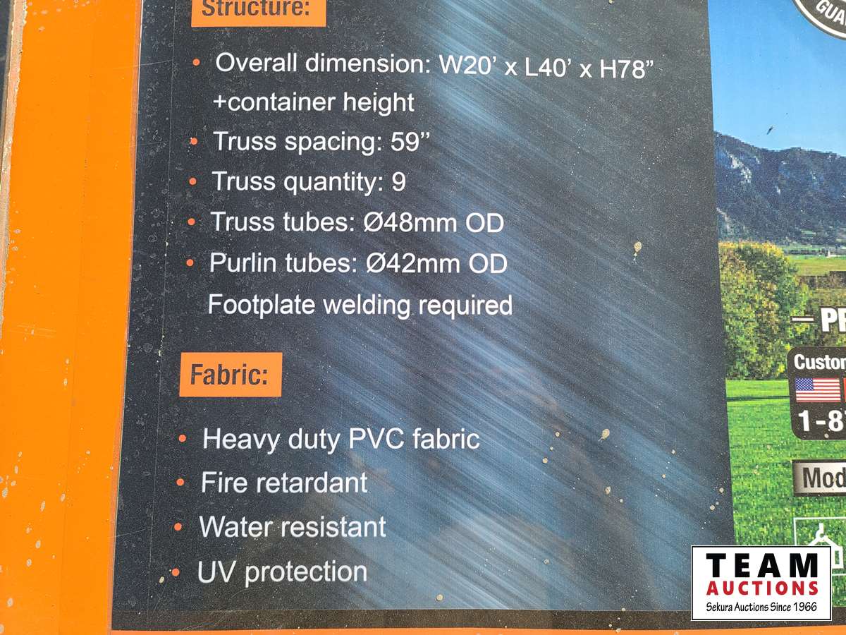 292 TMG Industrial 20 Ft X 40 Ft Container Shelter (Unused)