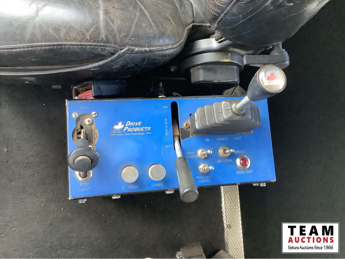 Cummins ISX 600 deleted engine, 18 speed Fuller 189B transmission, 13,200 lb front axle, 46,000 rears, full 4 way lockers, Neway air ride suspension, rebuilt air sliding 5th wheel, rear low bed ramps, live roll and rear tow hitch on back of frame, top cab mount beacon light, 268 inch wheel base, (2) side frame mounted tool boxes, tire chains, upgraded headlights, sun roof, Aero cab, sleeper and double fold up top bunk bed, rear window, Rufnek hydraulic drive winch with Ace head rack, full deck cover with storage lids, 11R24.5 tires on aluminum rims