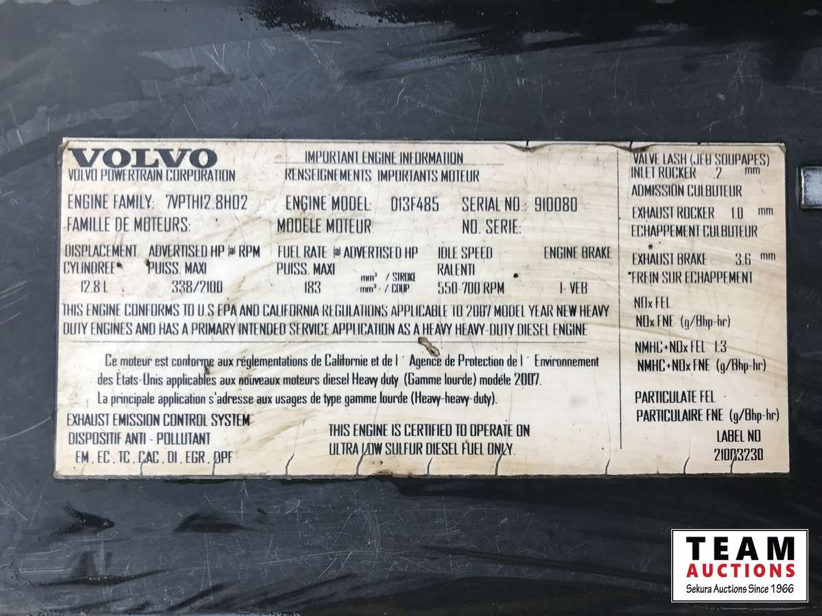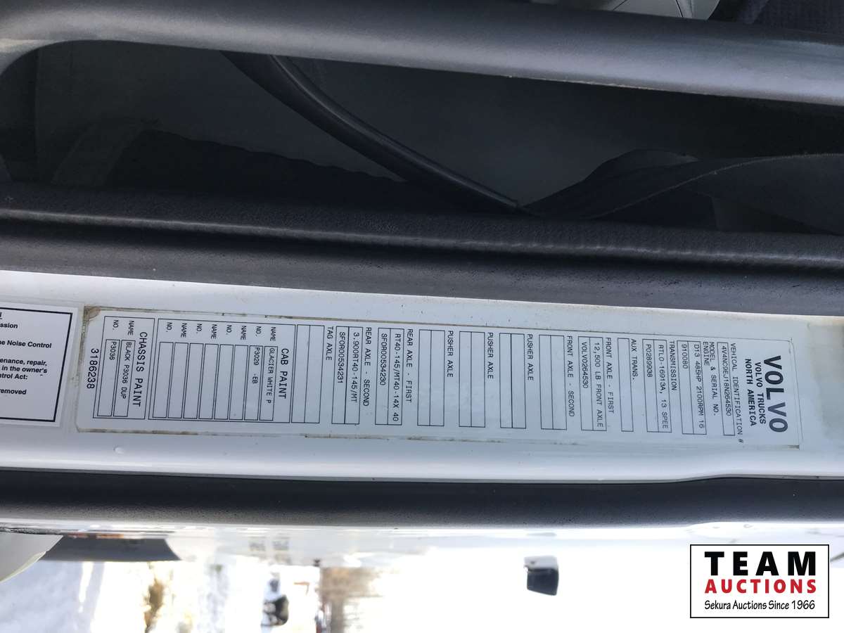 Volvo D13 550 HP engine, 13 speed transmission, integeral sleeper, Wabasto engine and bunk heaters, 12,000 front axle, 46,000 rears, 11R22.5 tires