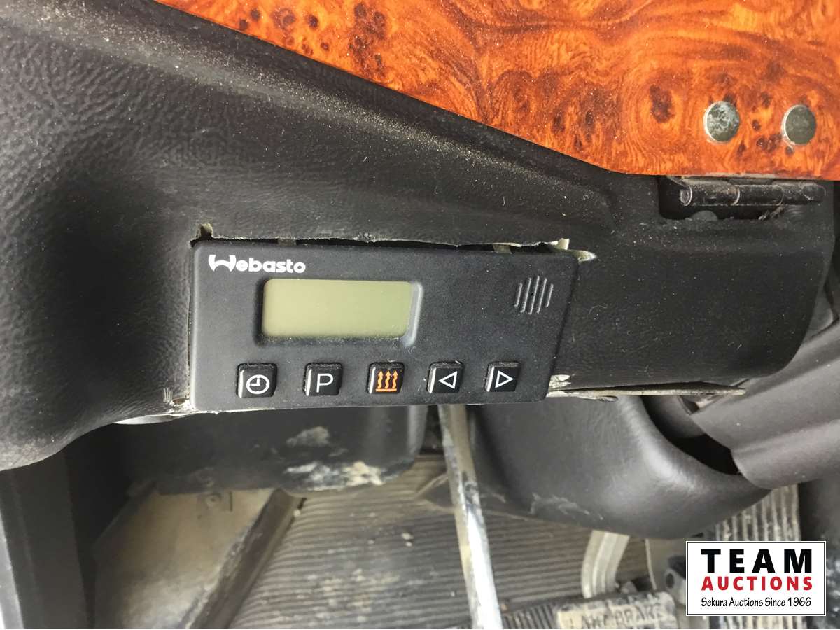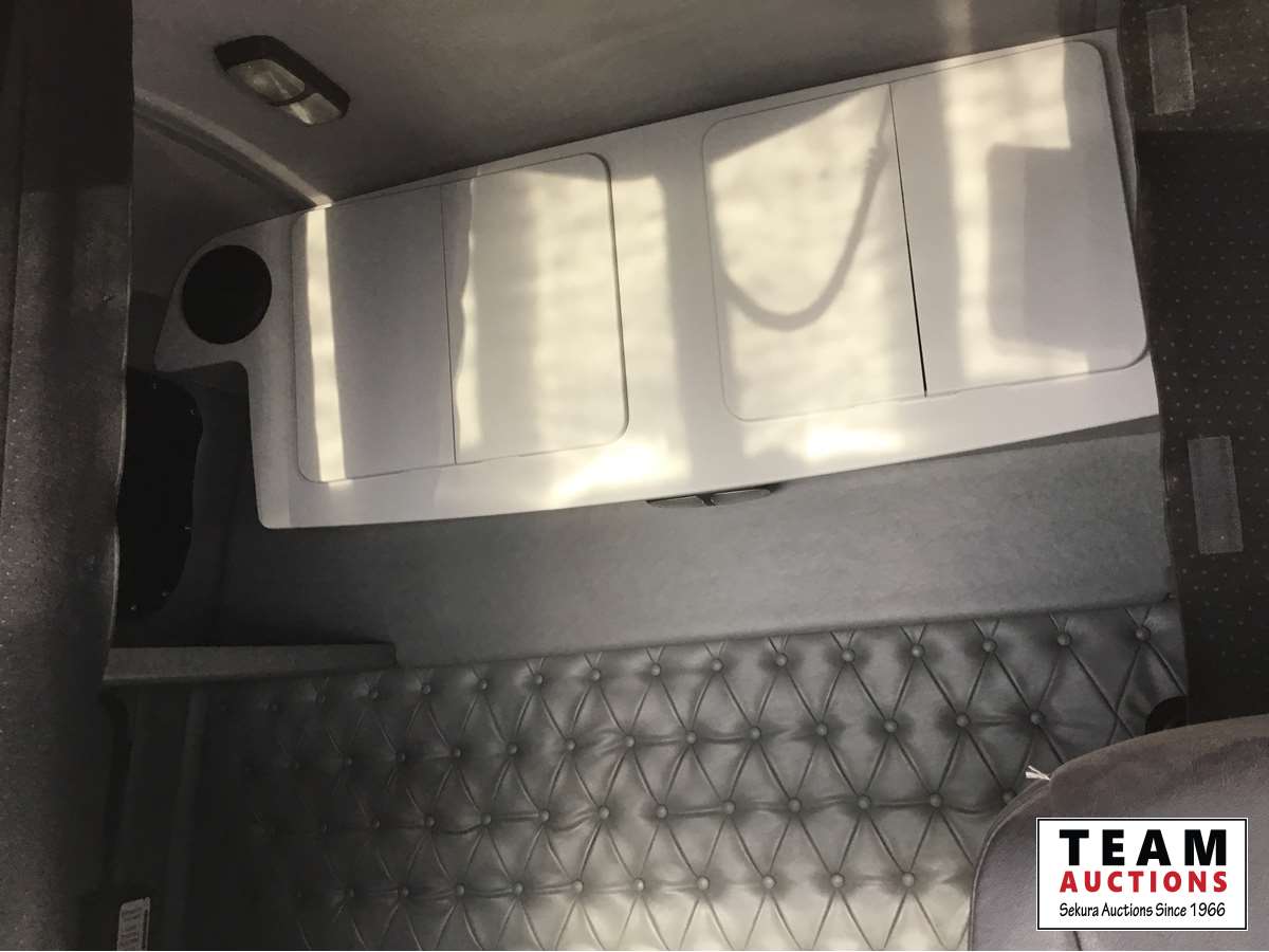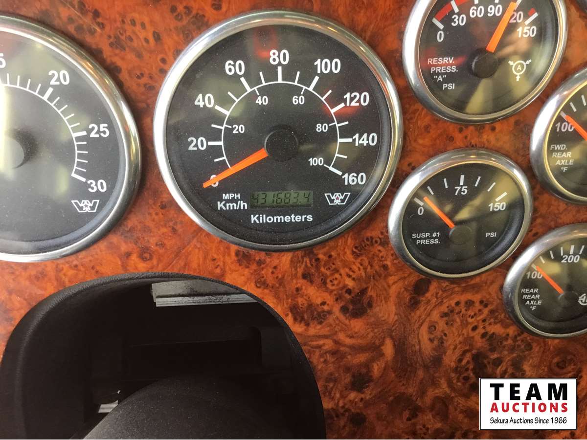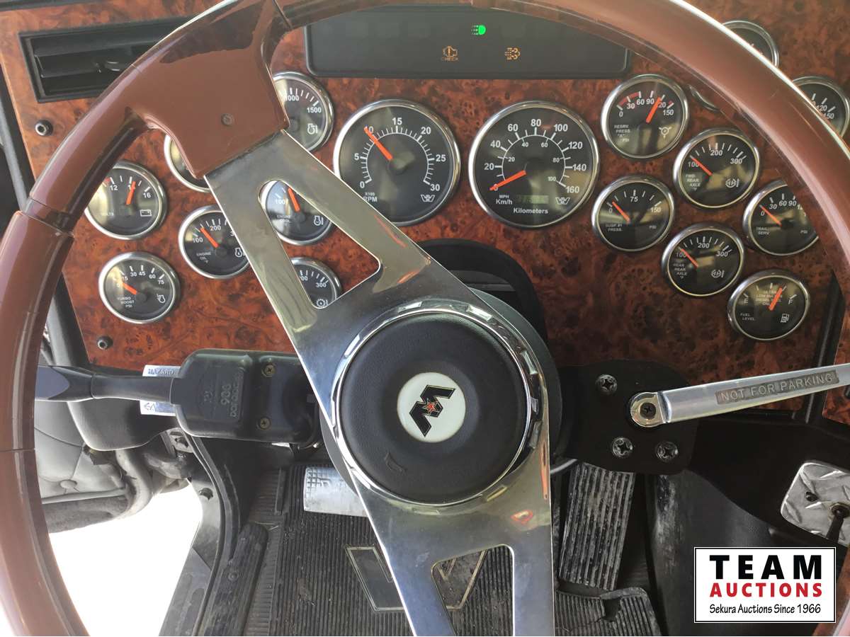 Detroit DD15 14.8 L, 580 HP engine, Eaton 18 speed transmission, 12,000 lb front axle, 46,000 lb rears, full locking differential, air ride suspension, sliding 5th wheel, Wabasto heater, 11R24.5 tires on aluminum rims, wet kit, wheel chains