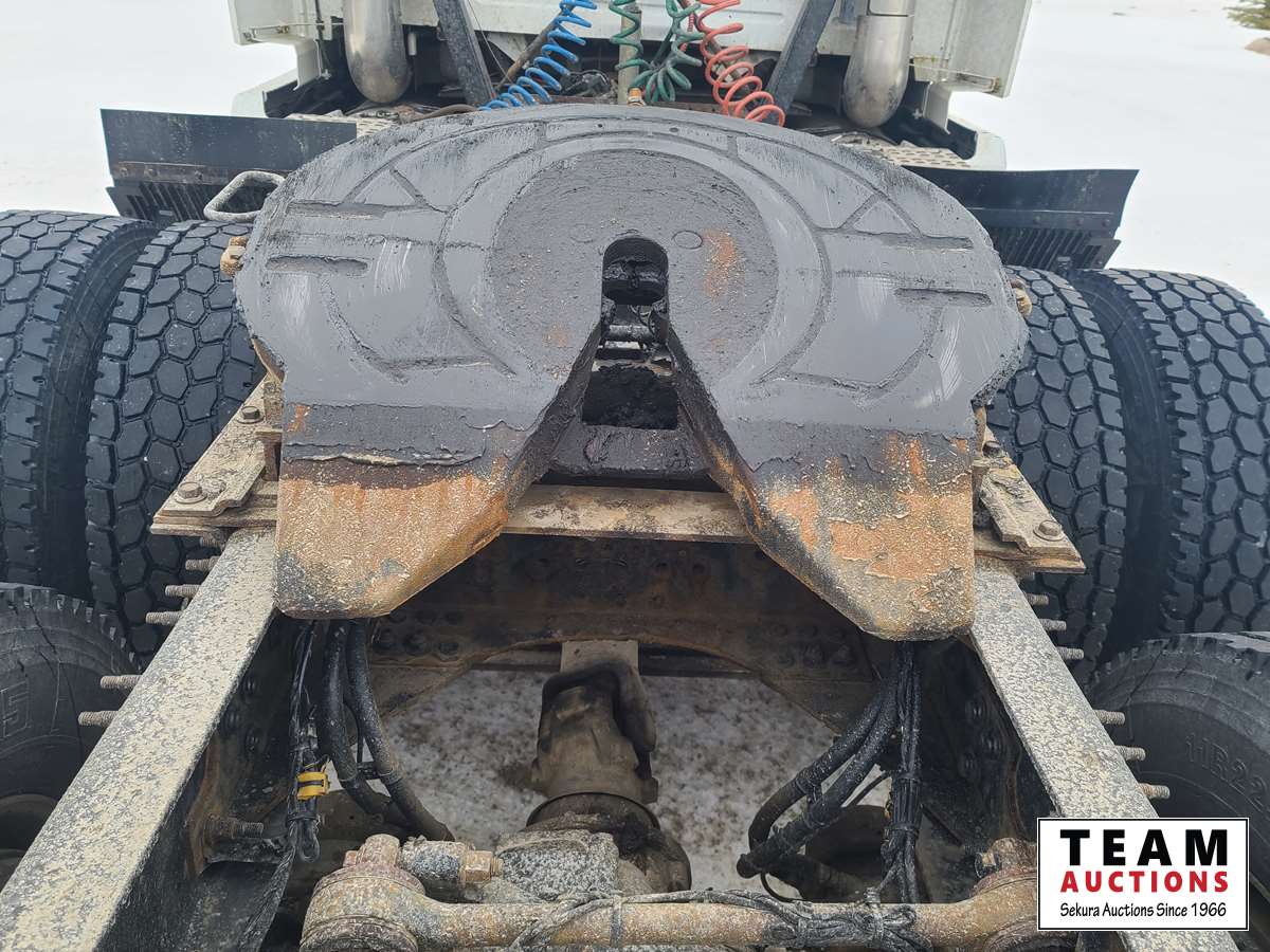 Volvo D16 16.1 L 550 HP deleted engine, Volvo auto-shift transmission, integral sleeper, air ride suspension, 13,200lb front axle, 46,000lb rears, full lockers, air sliding 5th wheel, Wabasto engine heater, 11R22.5 tires on aluminum rims