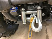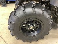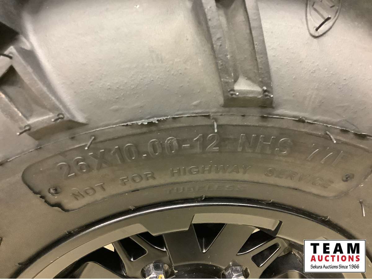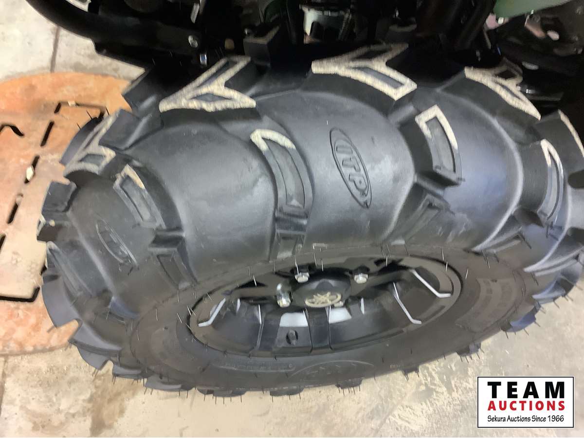 Hi/low, reverse transmission, electric start, front and rear racks, 3000 lb front winch, power steering, rear hitch receiver, 26 x 10.00 after market tires & rims