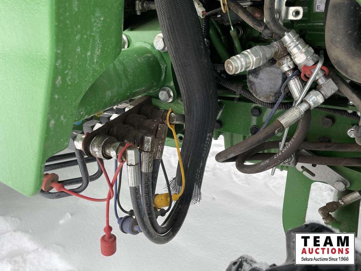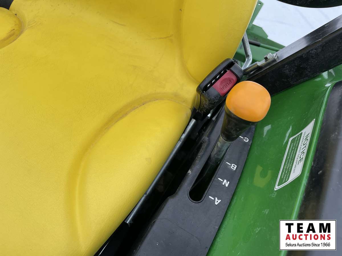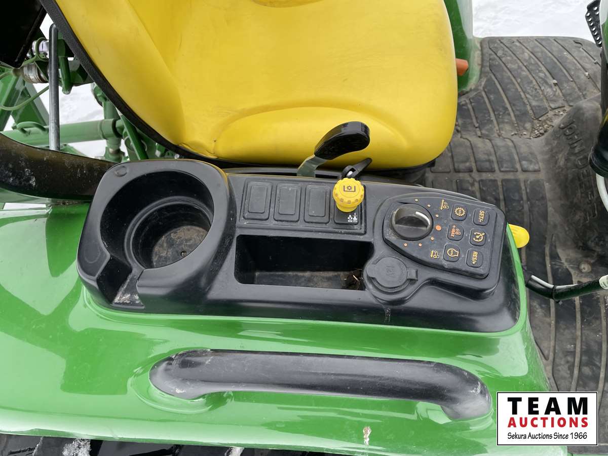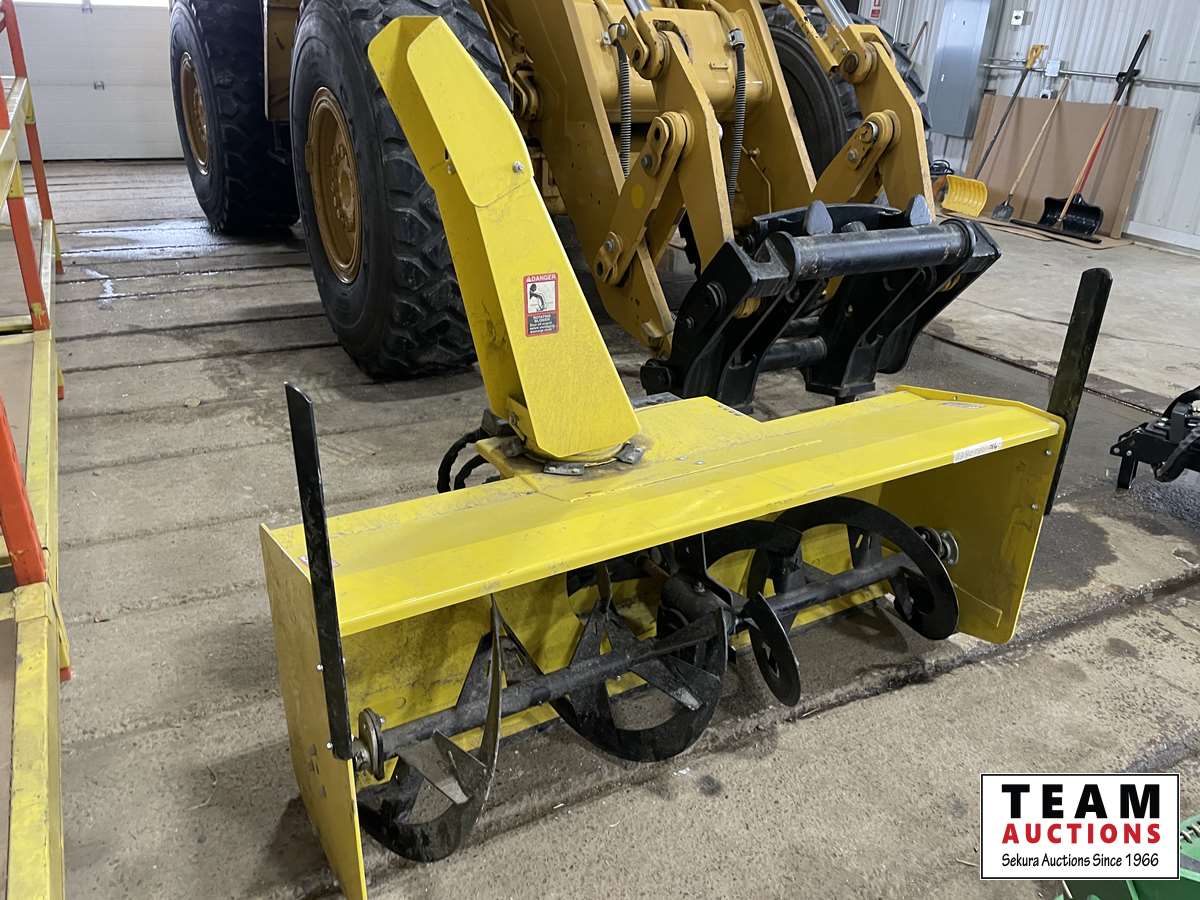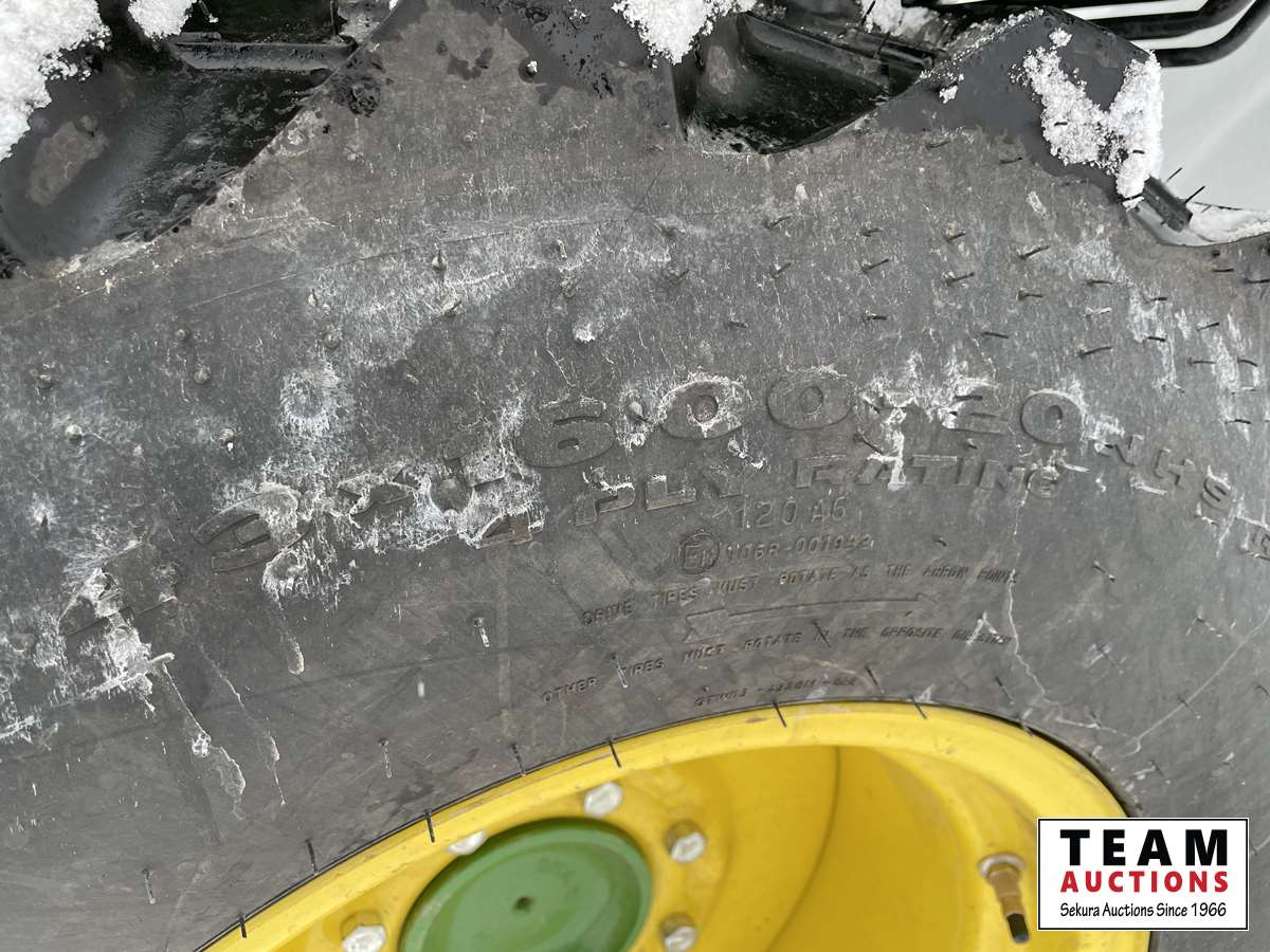 John Deere 320R Loader, 6 ft Q/A bucket, joystick, John Deere 59 inch front mount snow blower, John Deere 366 66 inch front mount blade, Yanmar 1.6 L 3 cylinder diesel engine, power steering, 3 speed hydrostatic transmission, two-post foldable ROPS, 540 PTO, 3 PT with I Match Q/A connector, 7.00-14 front, 11.2-24 rear tires