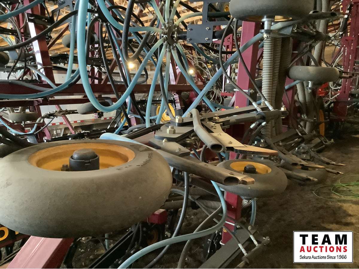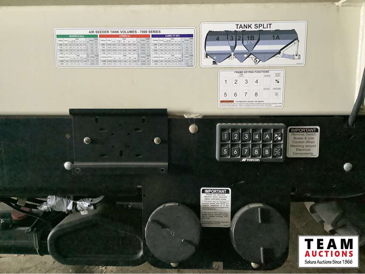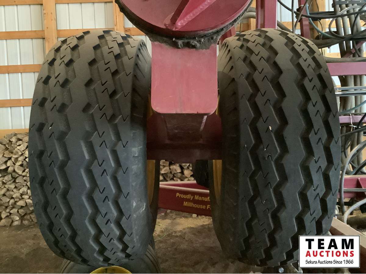 12 inch spacing, double shoot, 30.5 x 32 rear tires, 2017 Bourgault (4) compartment air tank, (4) tank cameras in tank, (1) rear camera, rear dual wheels (off for storage), X30 monitor, belt loading conveyor, sectional control on air tank