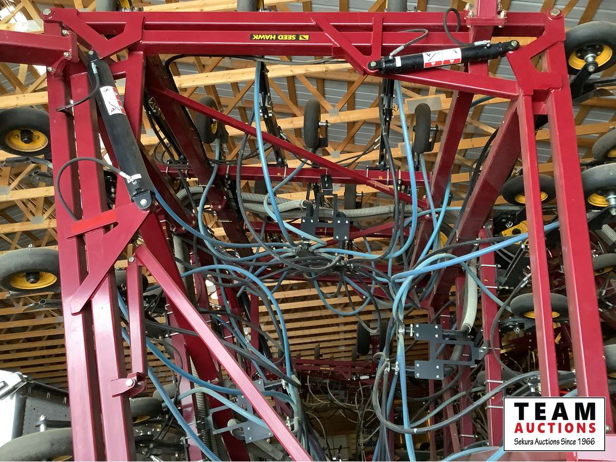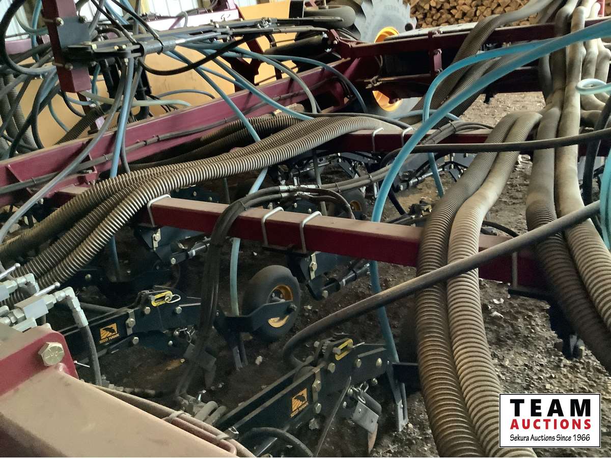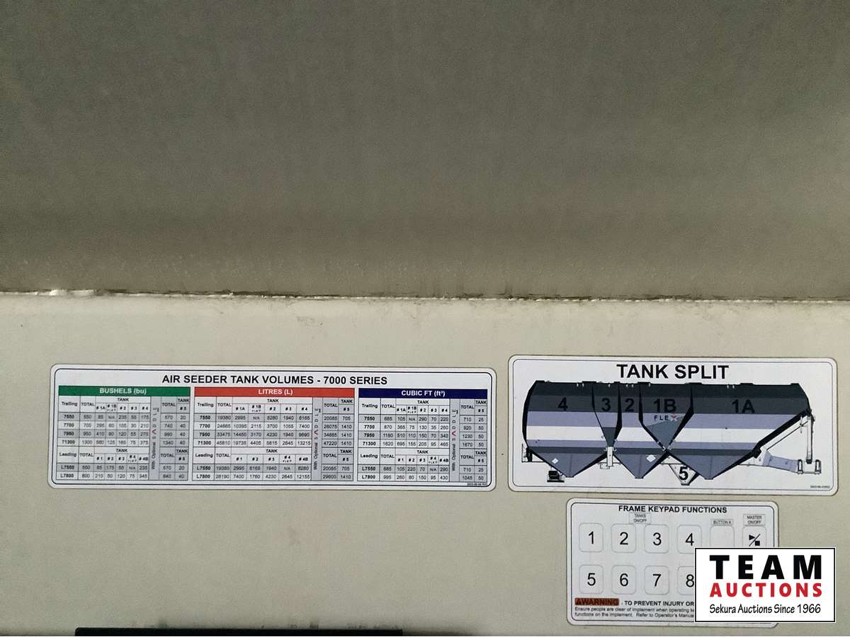 12 inch spacing, double shoot, 30.5 x 32 rear tires, 2017 Bourgault (4) compartment air tank, (4) tank cameras in tank, (1) rear camera, rear dual wheels (off for storage), X30 monitor, belt loading conveyor, sectional control on air tank