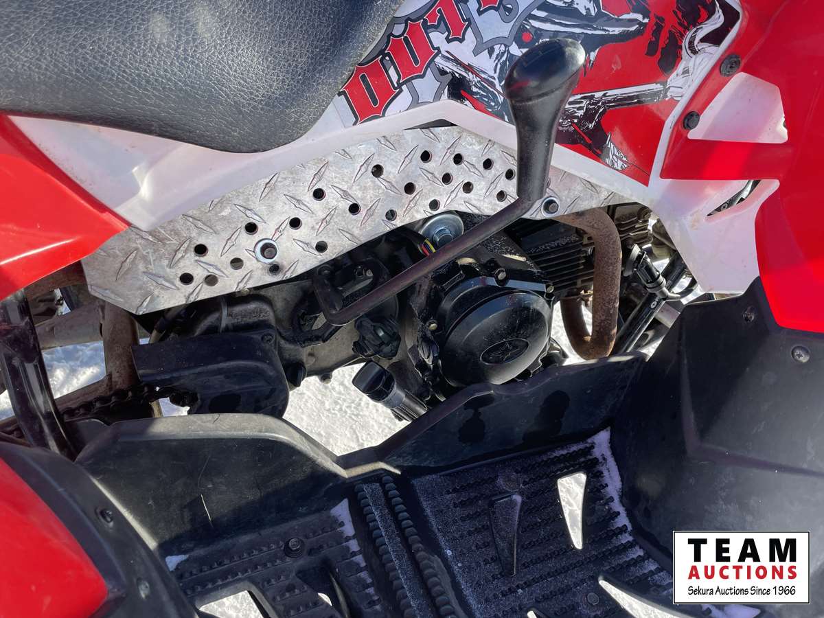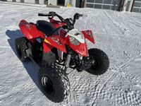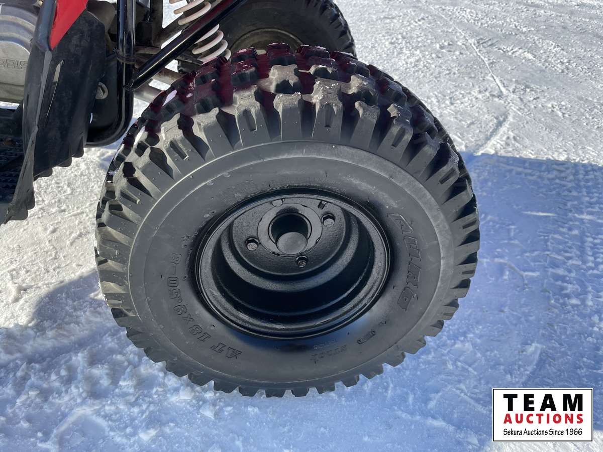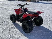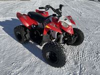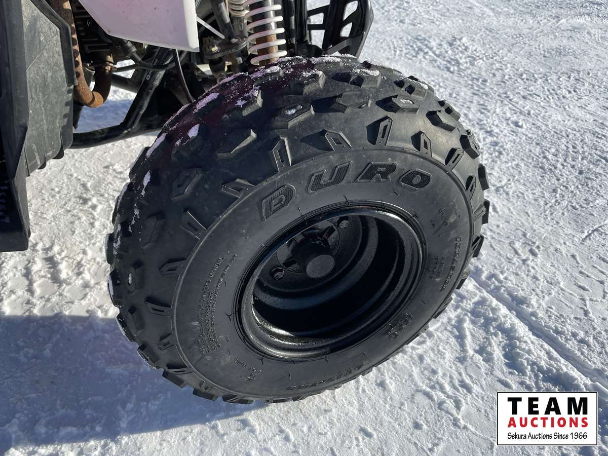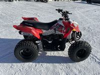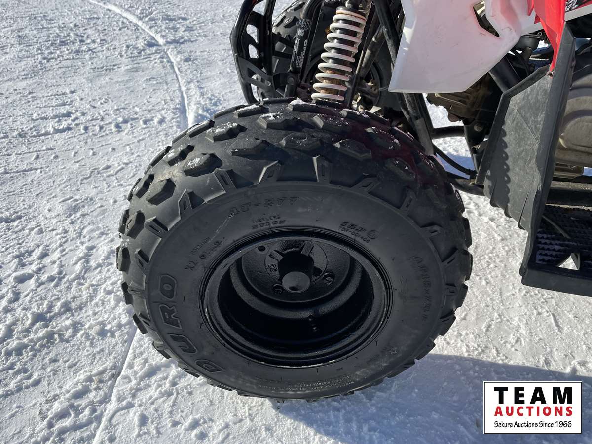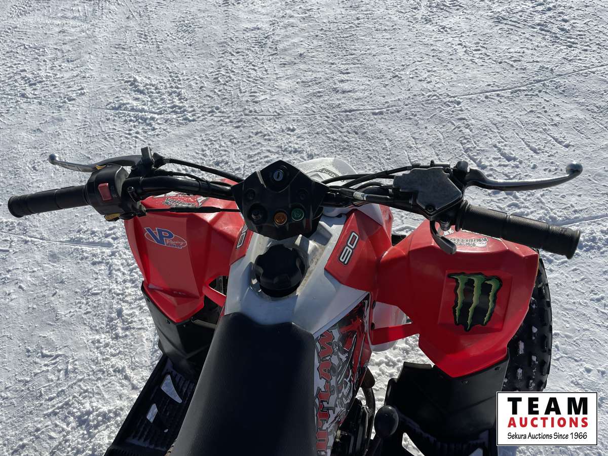 90 cc, 4 stroke engine, CVT transmission, reverse, good condition plastics, 19 x 7R8 front tires, 18 x 9.50-50 rear tires