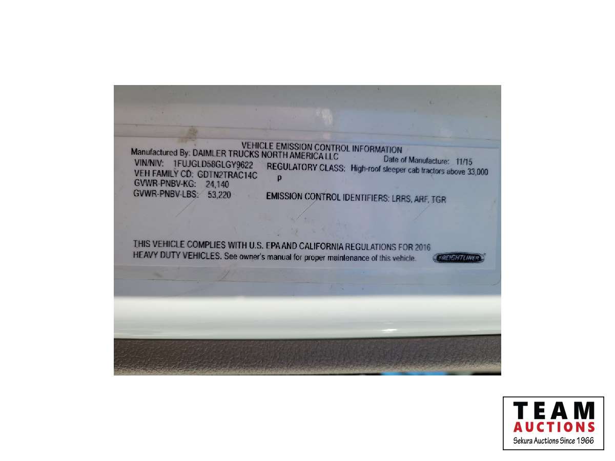 159 2016 Freightliner Cascadia T/A Sleeper Truck Tractor (Inoperable)