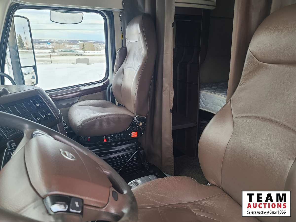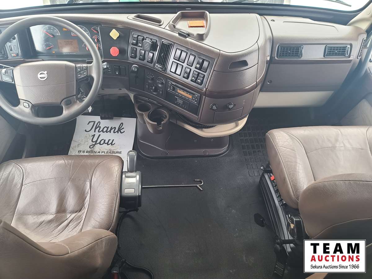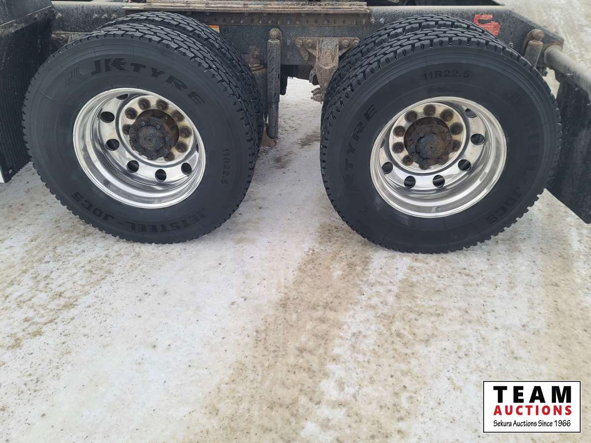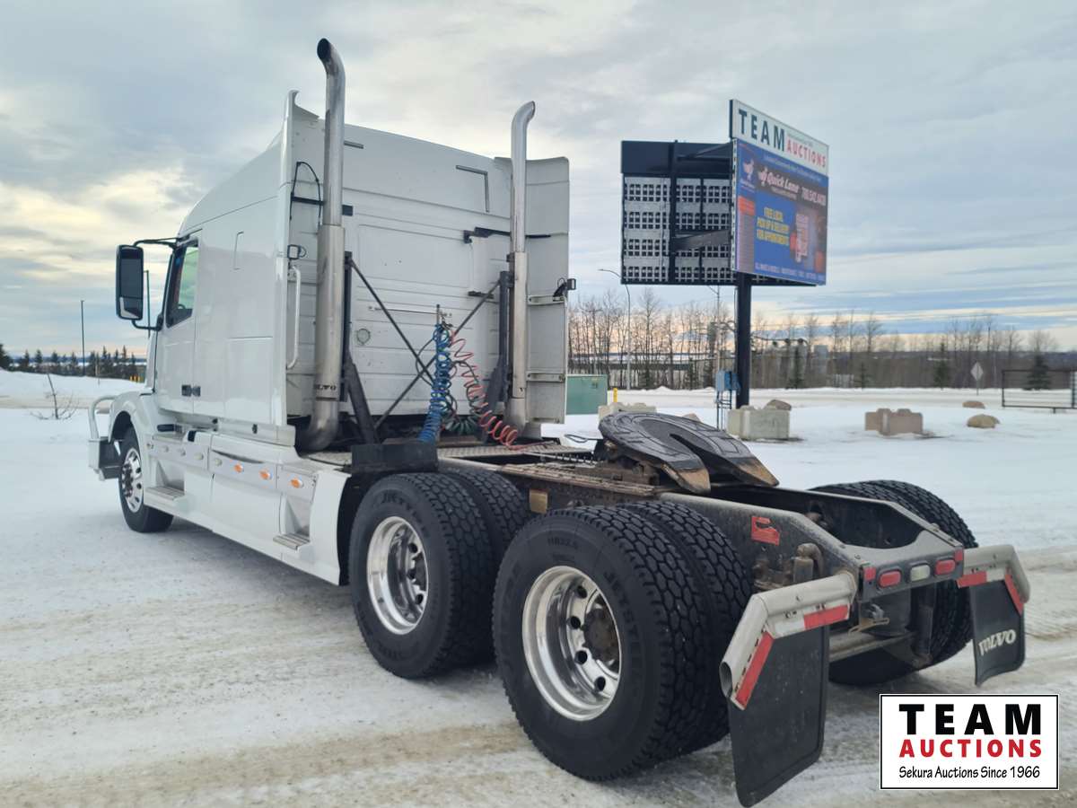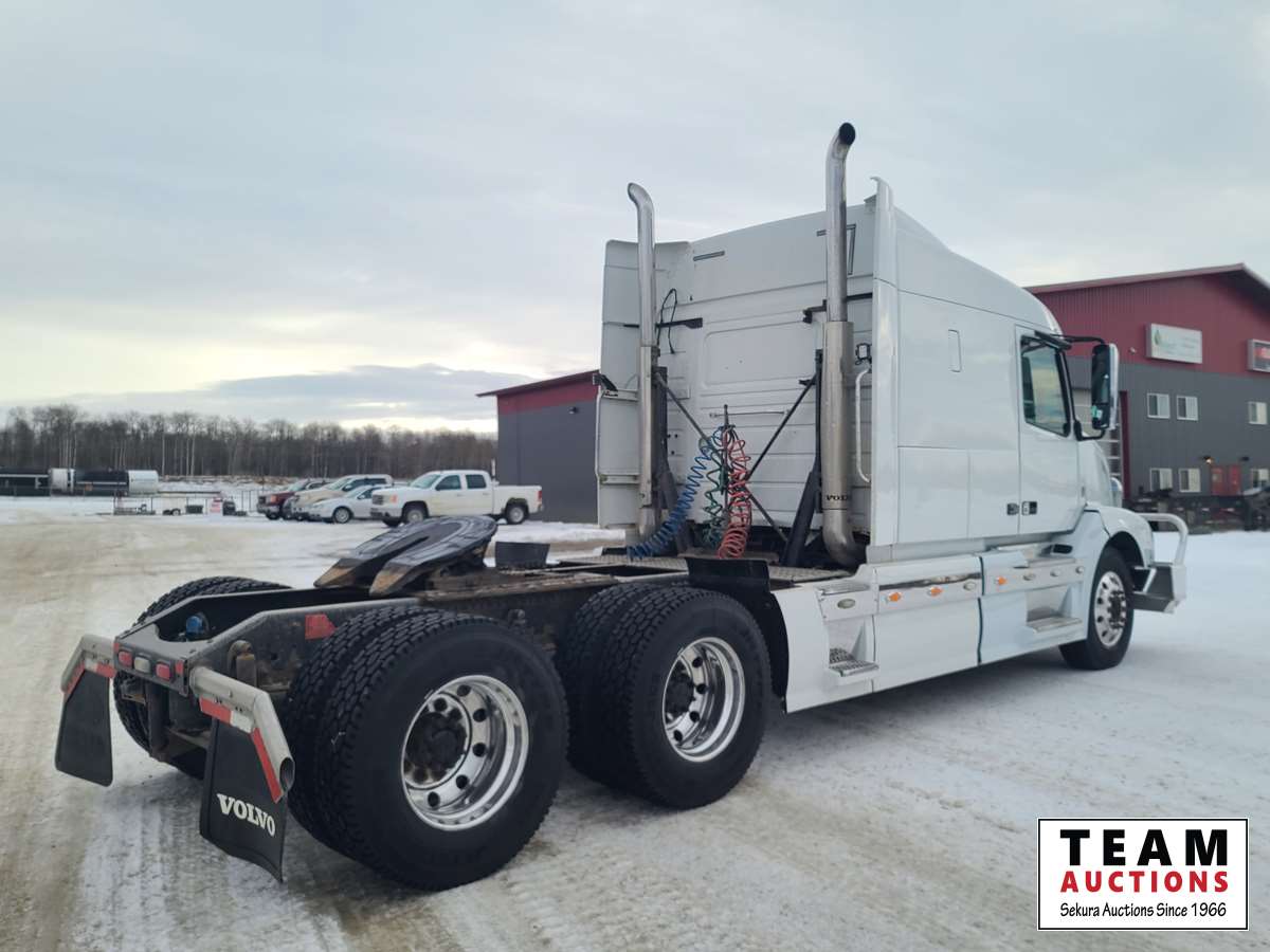 Volvo D16 16.1 L 550 HP deleted engine, Volvo auto-shift transmission, integral sleeper, air ride suspension, 13,200lb front axle, 46,000lb rears, full lockers, air sliding 5th wheel, Wabasto engine heater, 11R22.5 tires on aluminum rims