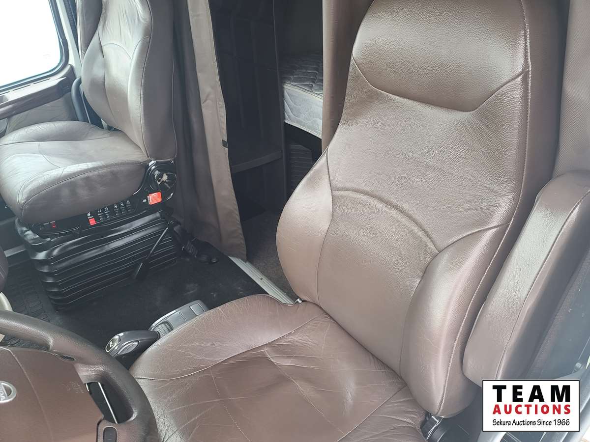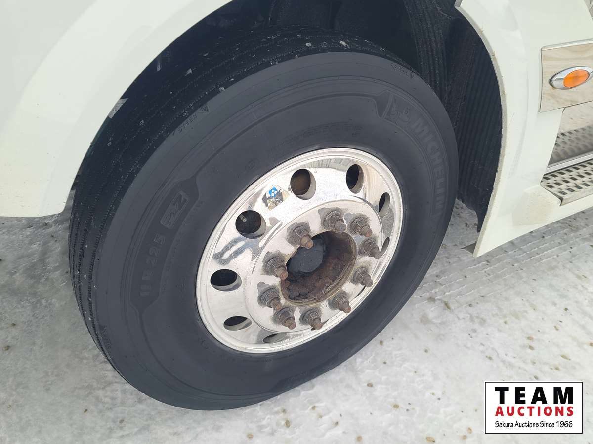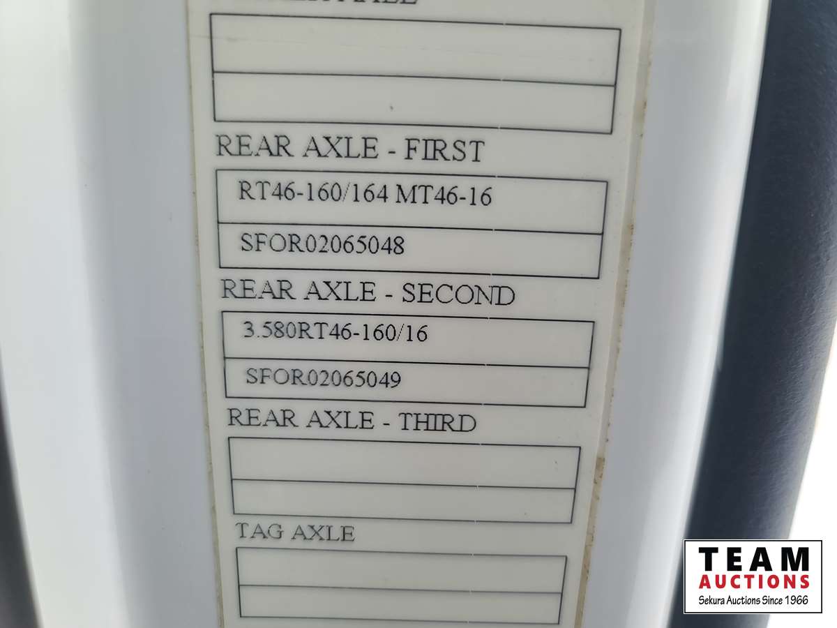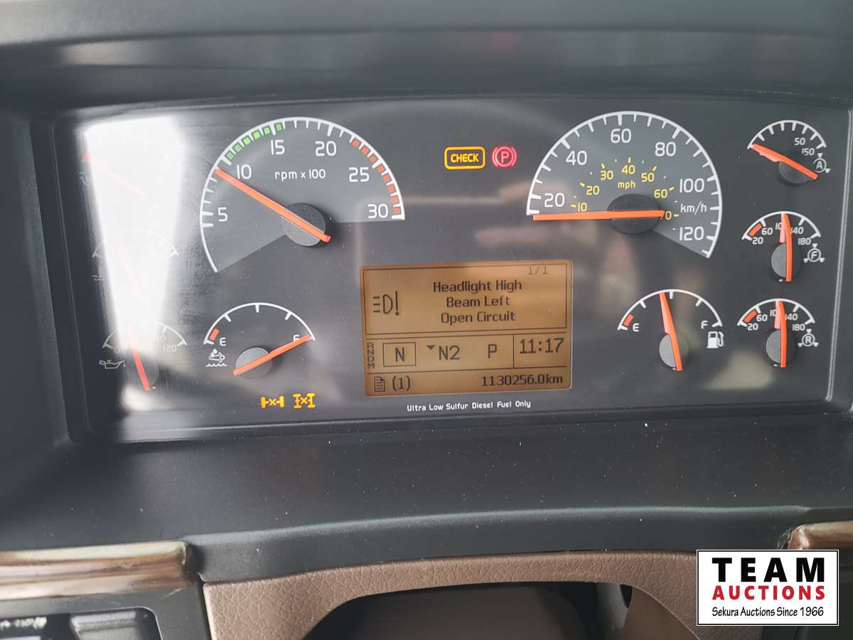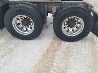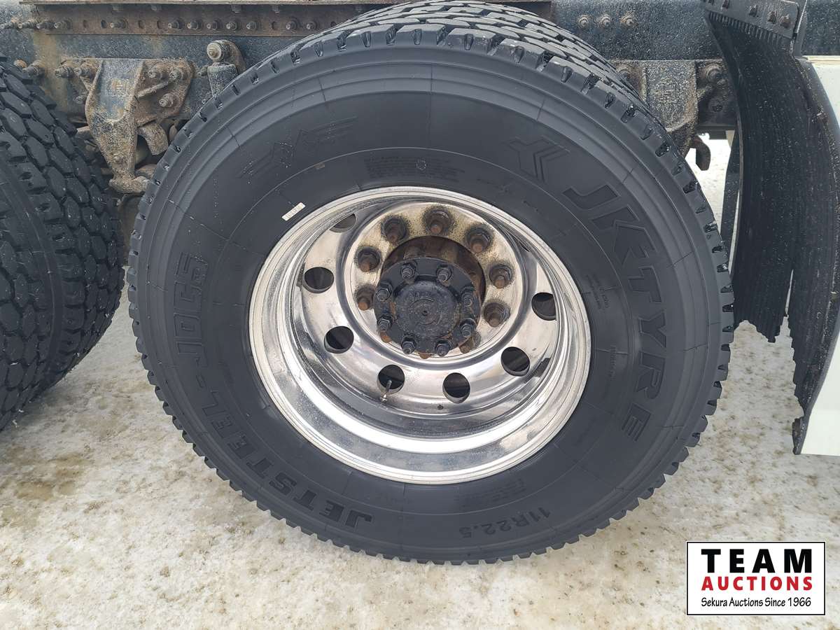Volvo D16 16.1 L 550 HP deleted engine, Volvo auto-shift transmission, integral sleeper, air ride suspension, 13,200lb front axle, 46,000lb rears, full lockers, air sliding 5th wheel, Wabasto engine heater, 11R22.5 tires on aluminum rims