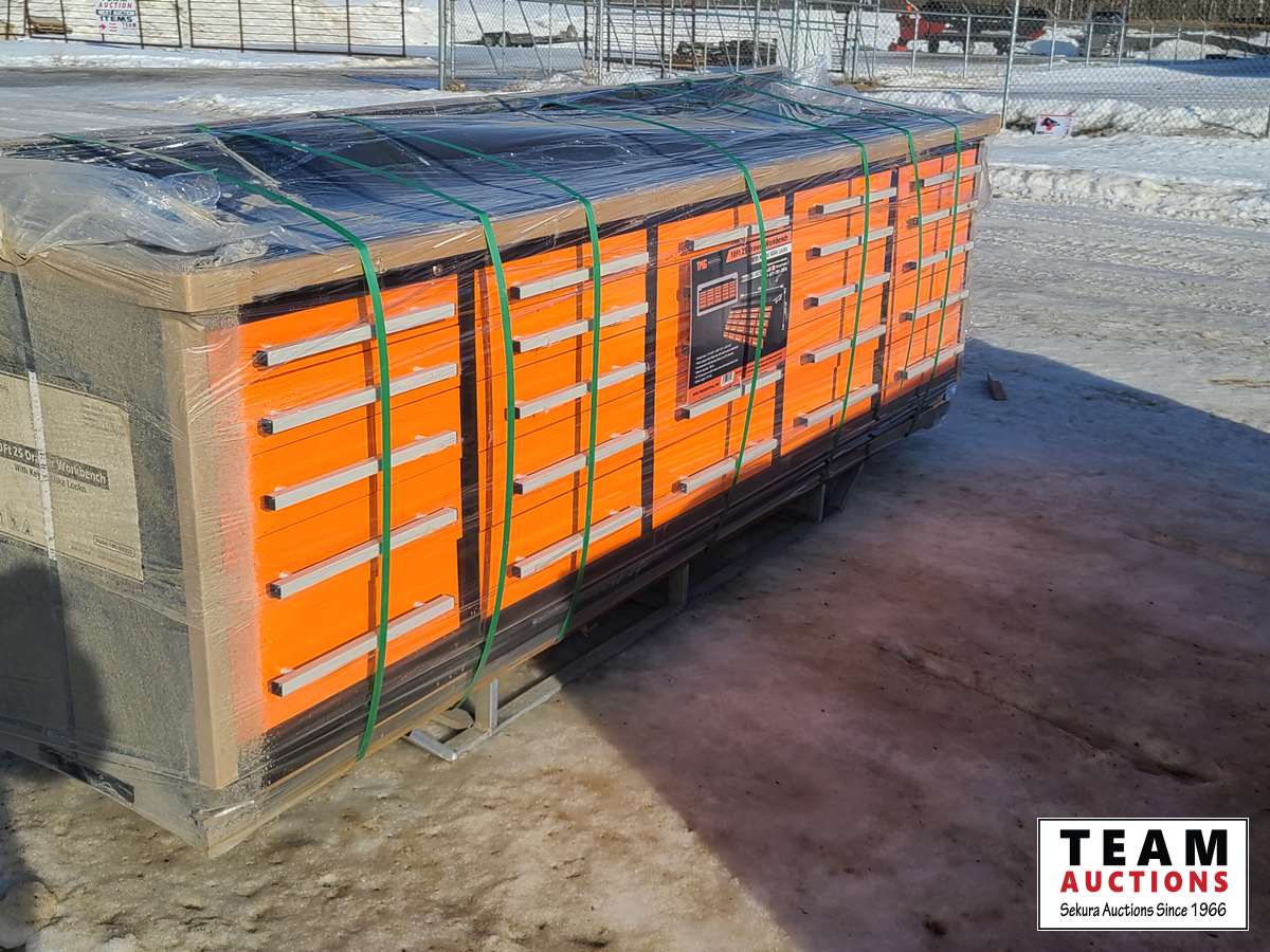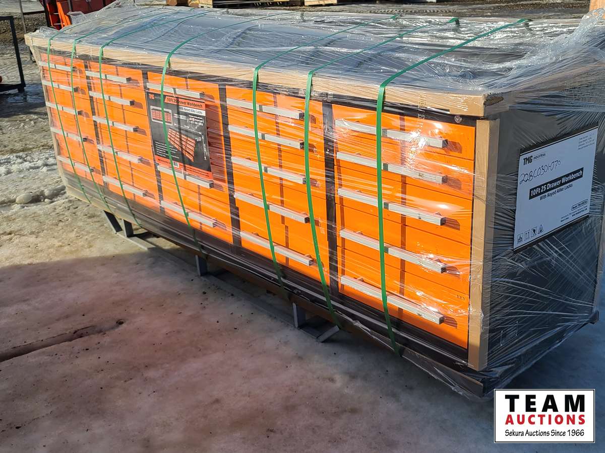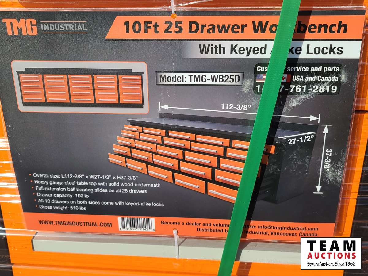 16 TMG Industrial 10 Ft Workbench with 25 Drawers (Unused)