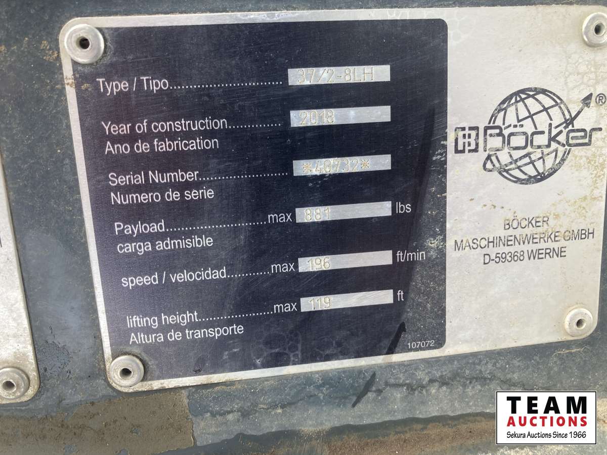 404 2018 Bocker 37/2-8LH 120 Ft Tow Behind Boom Lift (Unused)