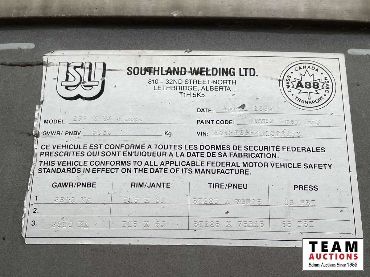 384A 1992 Southland Welding 17 Ft T/A Stock Trailer