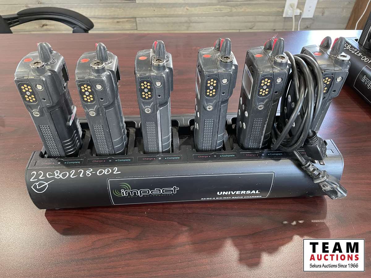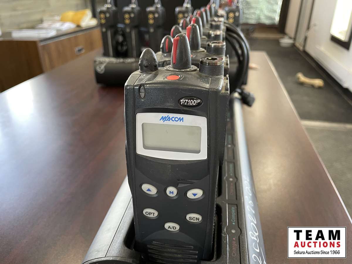 321 Macom P7100 (6) 2 Way Radios w/ Charging Station