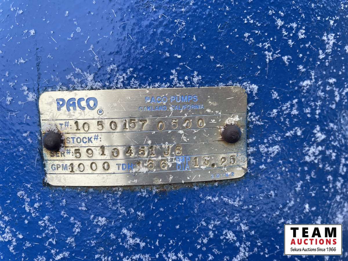 Electric motor with 1000gpm rated Paco pump as per decal, condition unknown