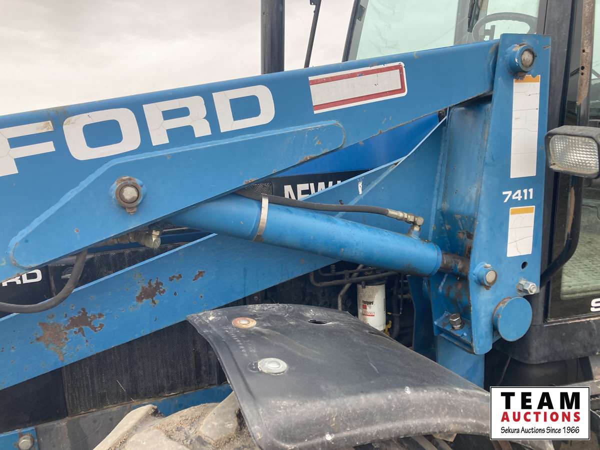100 HP engine, 86 HP PTO, Ford 7411 loader w/ grapple bucket, 16 speed ElectroShift, differential lock, 540/1000 PTO, 3 PT hitch, 2 hydraulic outets, 14.9-24 front, 18.4R34 rear