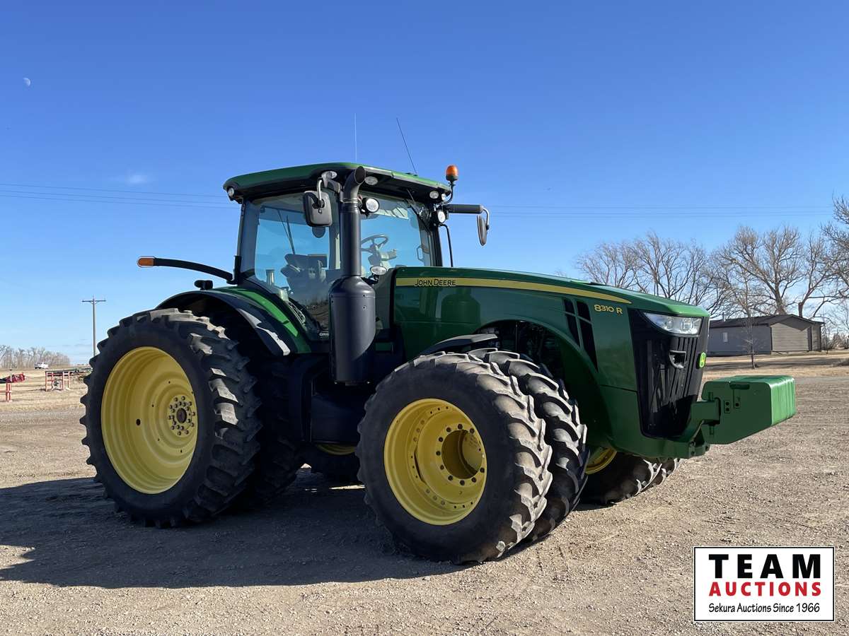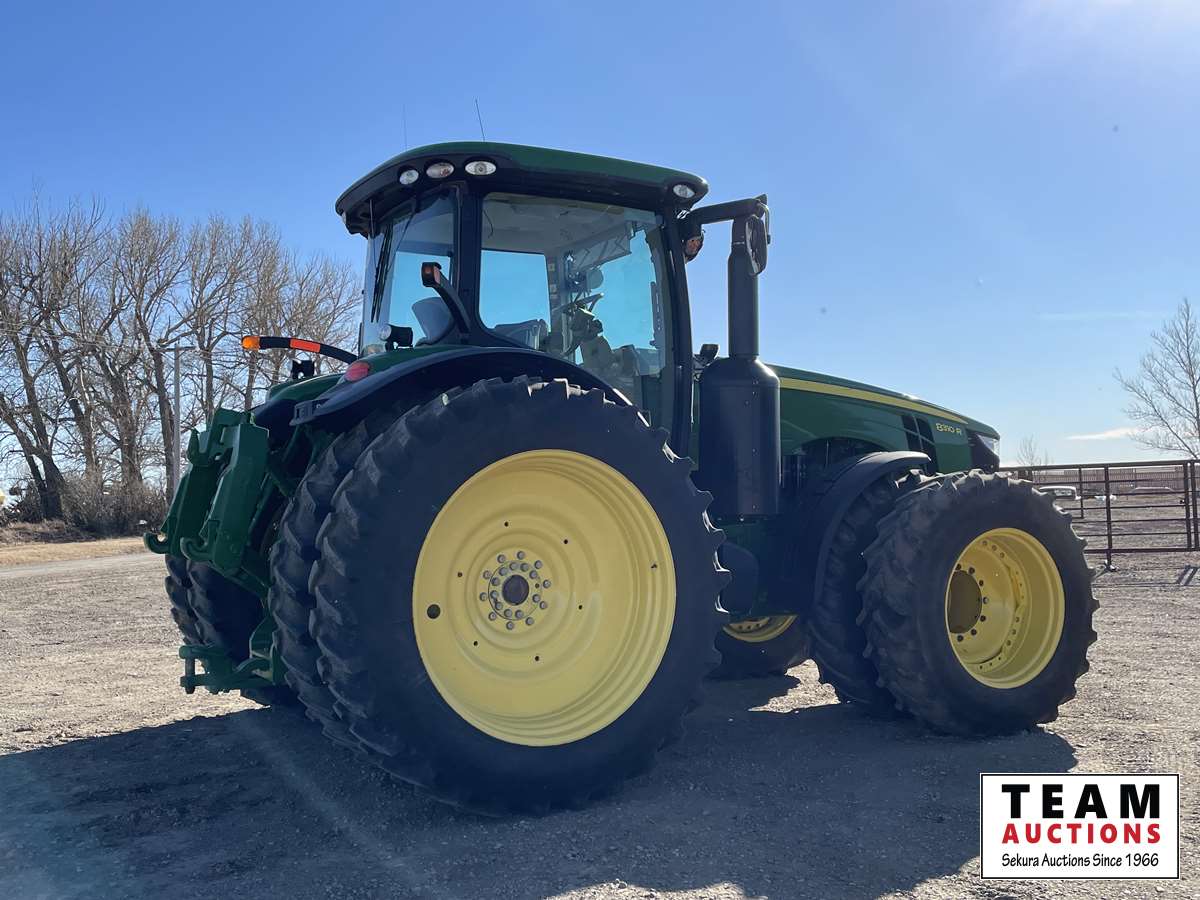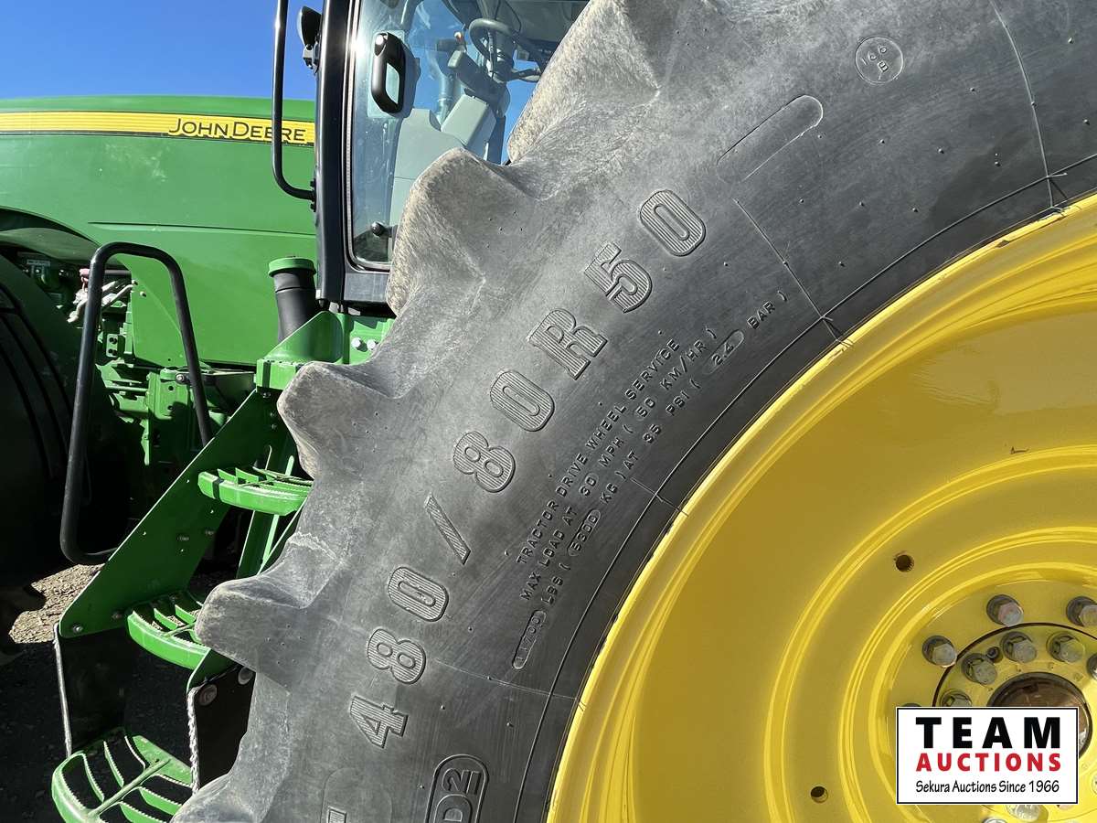 310 engine HP, 261 PTO HP, 50K, IVT transmission, left hand reverser, GreenStar 3 display, leather, autosteer, differential lock, 4 hydraulic outlets, aux hydraulic, Q/C 3 PT hitch, rear 3 PT controls, Big 1000 PTO, air brakes, 22 front weights, rear wheel weights, 420/85R34 front duals, 480/80R50 rear duals