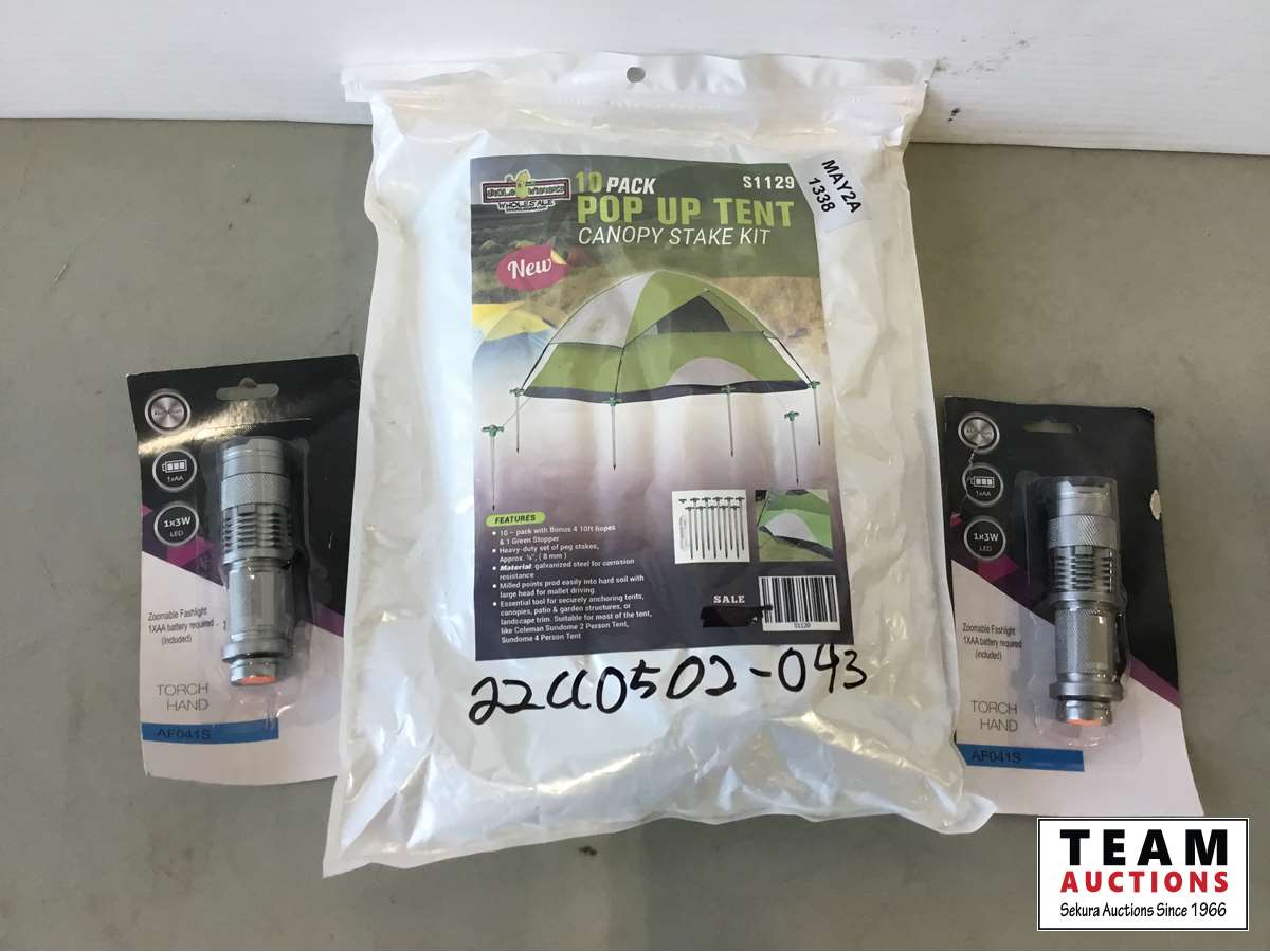 1427 (2) Flash Lights & Tent Stake Kit (Unused)