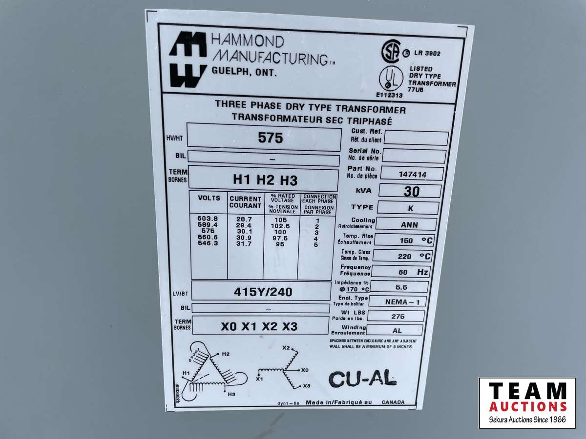 1191 Hammond Manufacturing 30 Kva Transformer