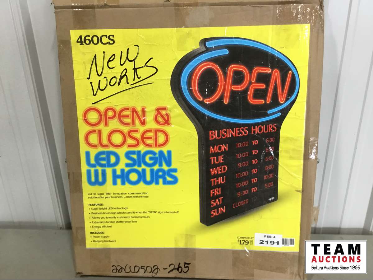 1216 LED Store Open Sign with Hrs and Remote (Unused)