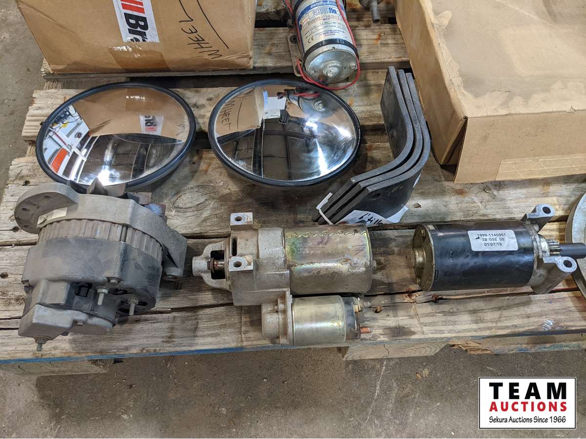 (1) new Bobcat S300 or S250 ring gear, (2) starters, (10 alternator, (2) mirrors, 12V weed sprayer pump, pulley, tiller tines
