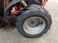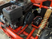 Electric start gas engine, variable speed transmission, spring and shock suspension, hydraulic disc brake