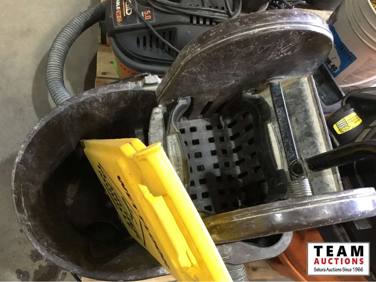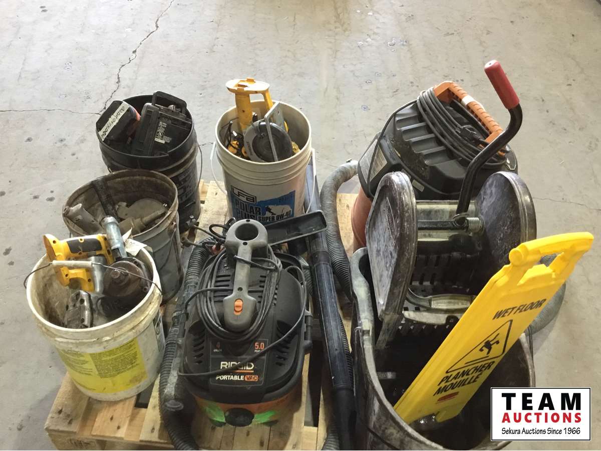Vacuums, pails, assorted tools