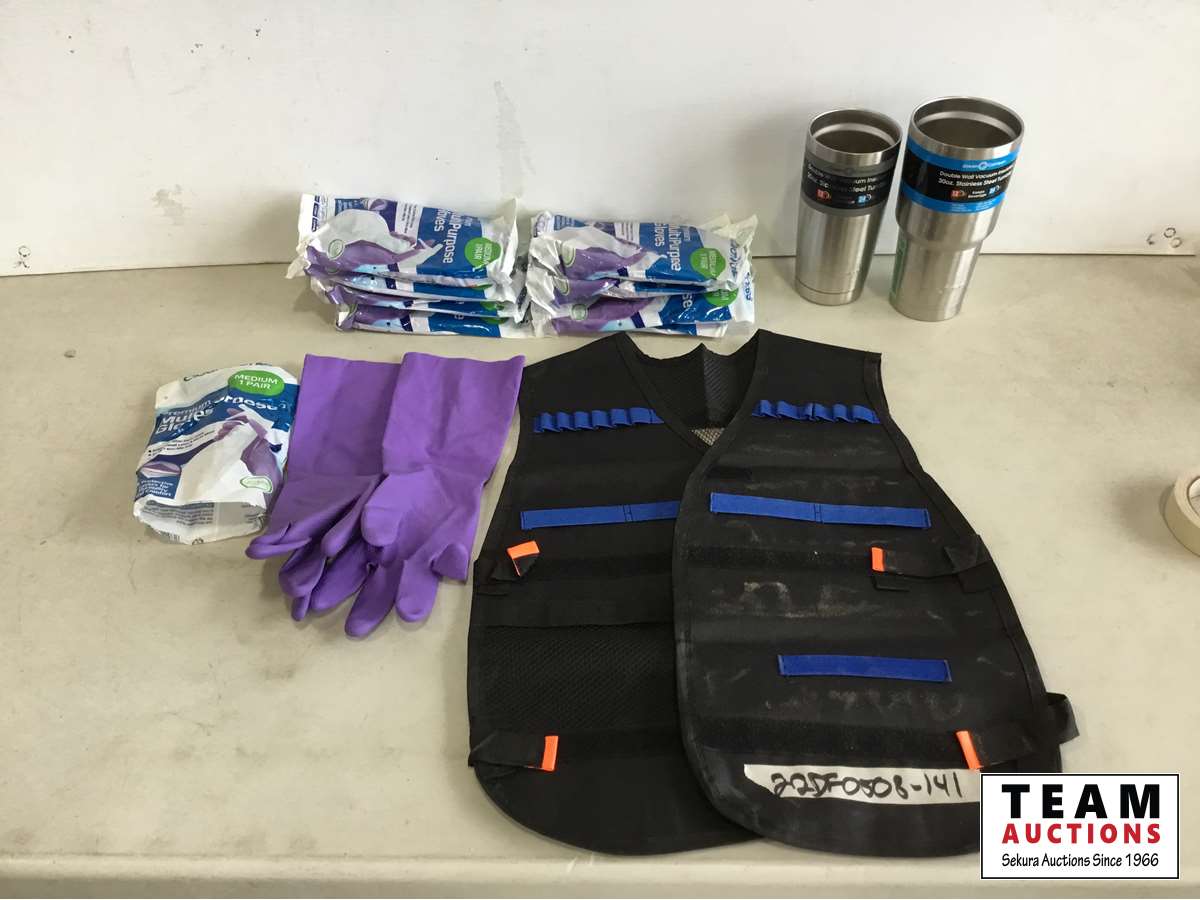 2130 Qty of Rubber Gloves, Mugs and Vest (Unused)