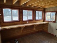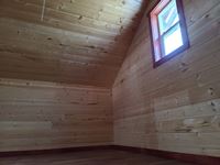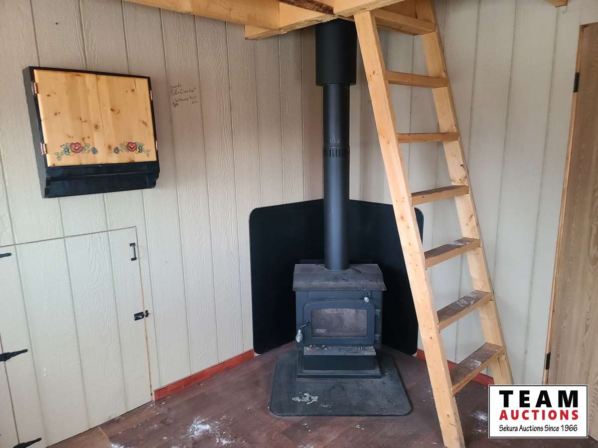Metal roof, wood burning stove, loft, wood box, small deck and overhang roof included