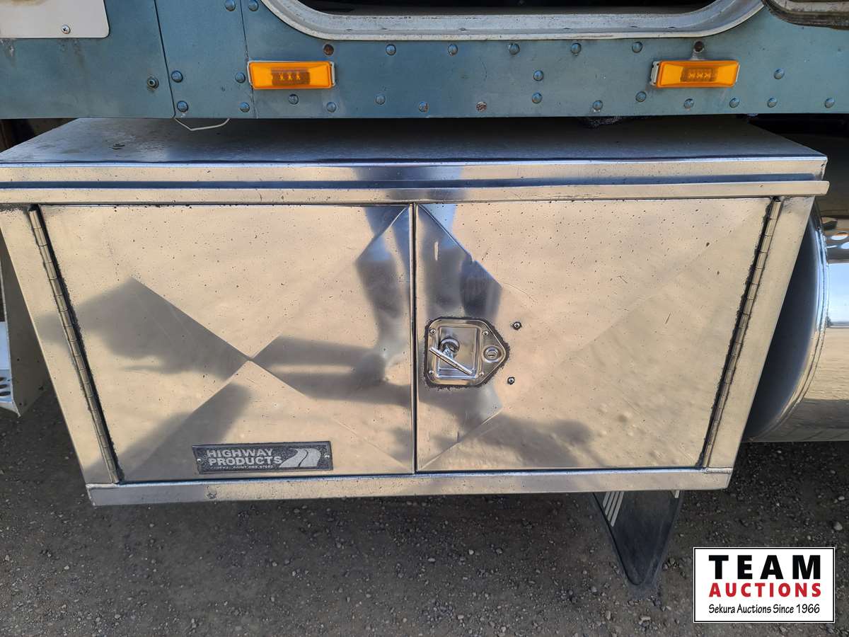 Detroit Series 60 12.7 L engine, Eaton Fuller 15 speed transmission, air ride suspension, 40,000 lb rears, 12,000 lb front, 3 way lockers, sliding 5th wheel, headache rack, tool boxes, aluminum rims, 11R24.5 inch tires