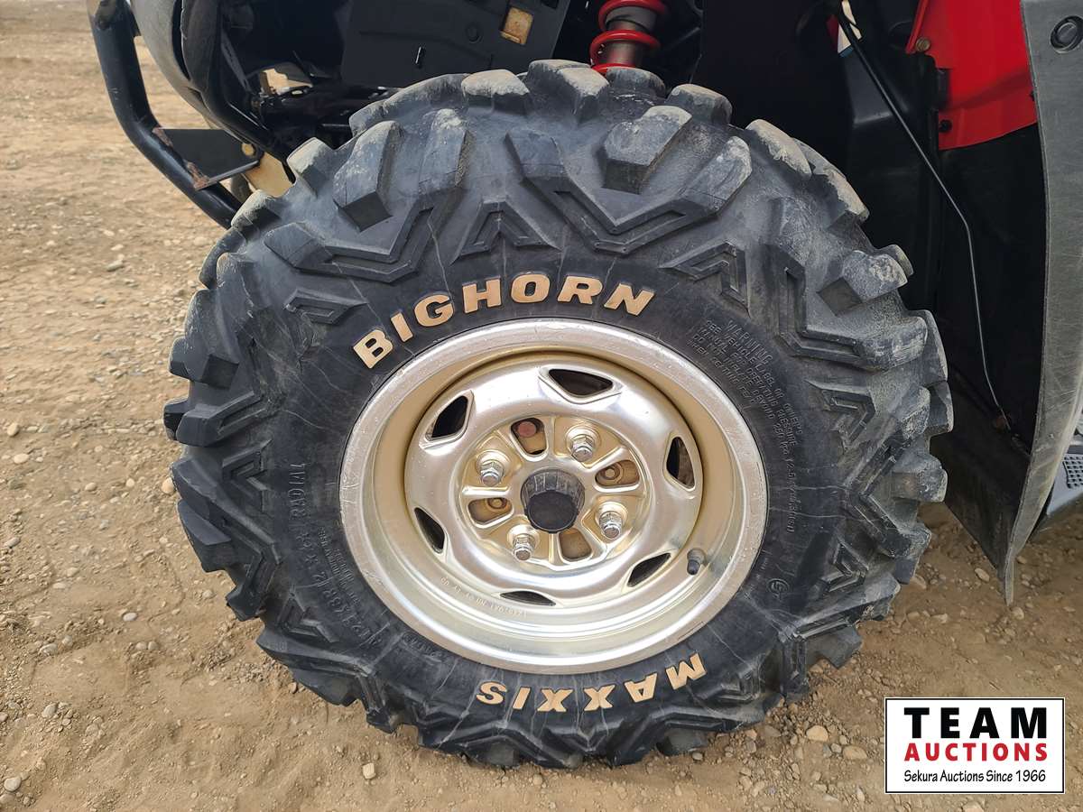 650 cc, automatic transmission or electric shift, selectable 2WD/4WD, Warn 2500 l b winch, hand and thumb warmers, front bumper, hitch, 25 inch Bighorn Radial