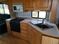 One slide out, A/C, fridge, stove, microwave, dinette, love seat, bathroom, central vac, (2) propane tanks, outside shower, 235/80R16