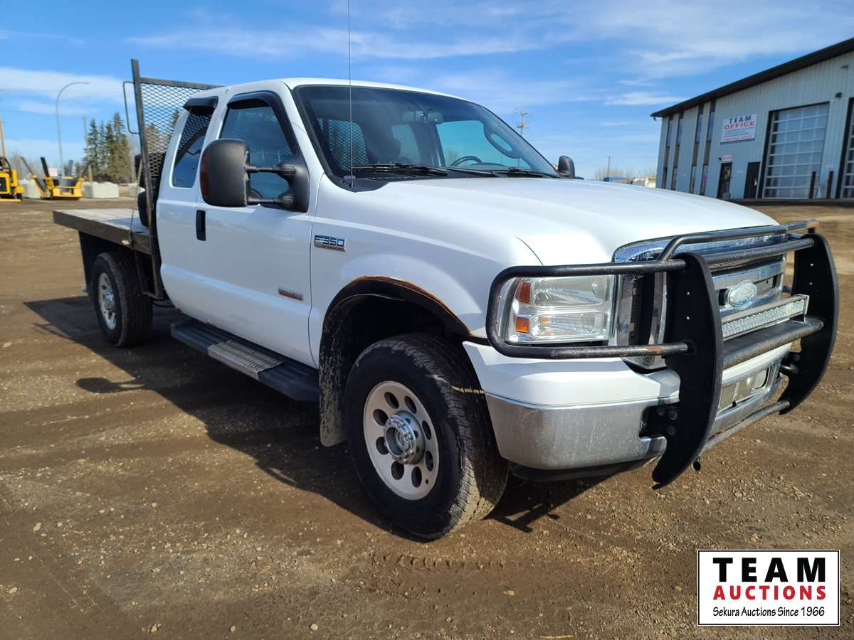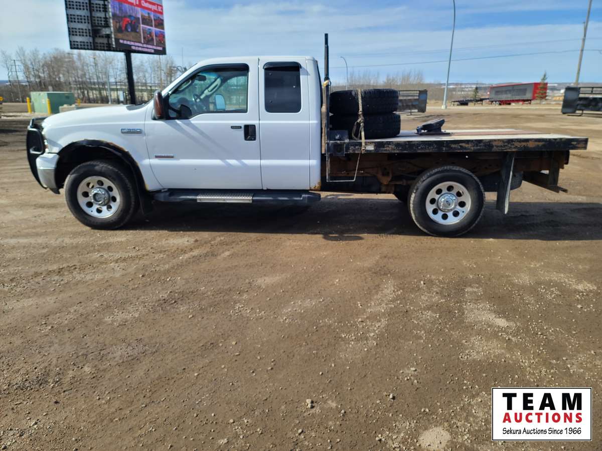 549 2007 Ford F350 4X4 Extended Cab Flat Deck Truck