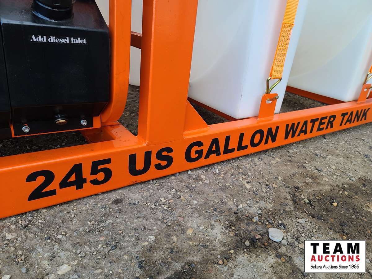 Kohler 14 HP engine, diesel fired boiler, 245 gallon water tank, triplex pump