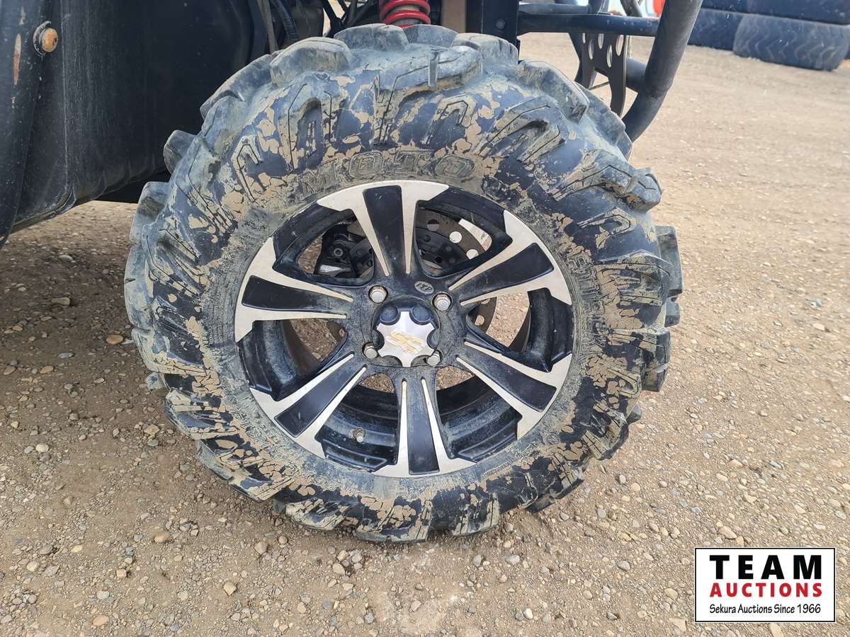 660 cc, 4-stroke single, liquid-cooled w/fan, automatic transmission, differential lock, on command 4 x 4, Warn 3000 lb winch w/remote, dump box, back seat, rear 26 x 11.00R14, 26 x 9.00R14 front