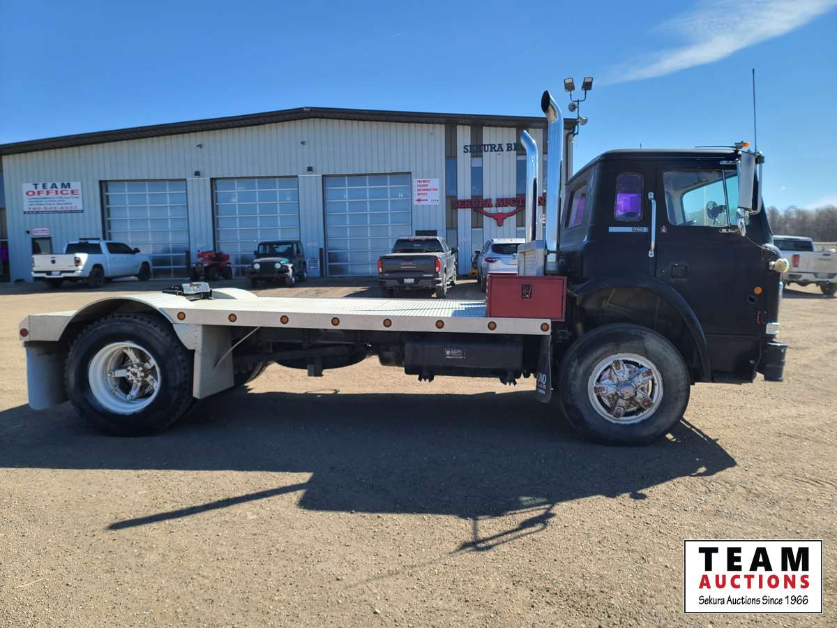 466 engine, Allison automatic transmission, air ride suspension, front axle air ride assist, aluminum deck w/5th wheel hitch, tool boxes, spare tire, underbelly water holding tank, 11R22.5