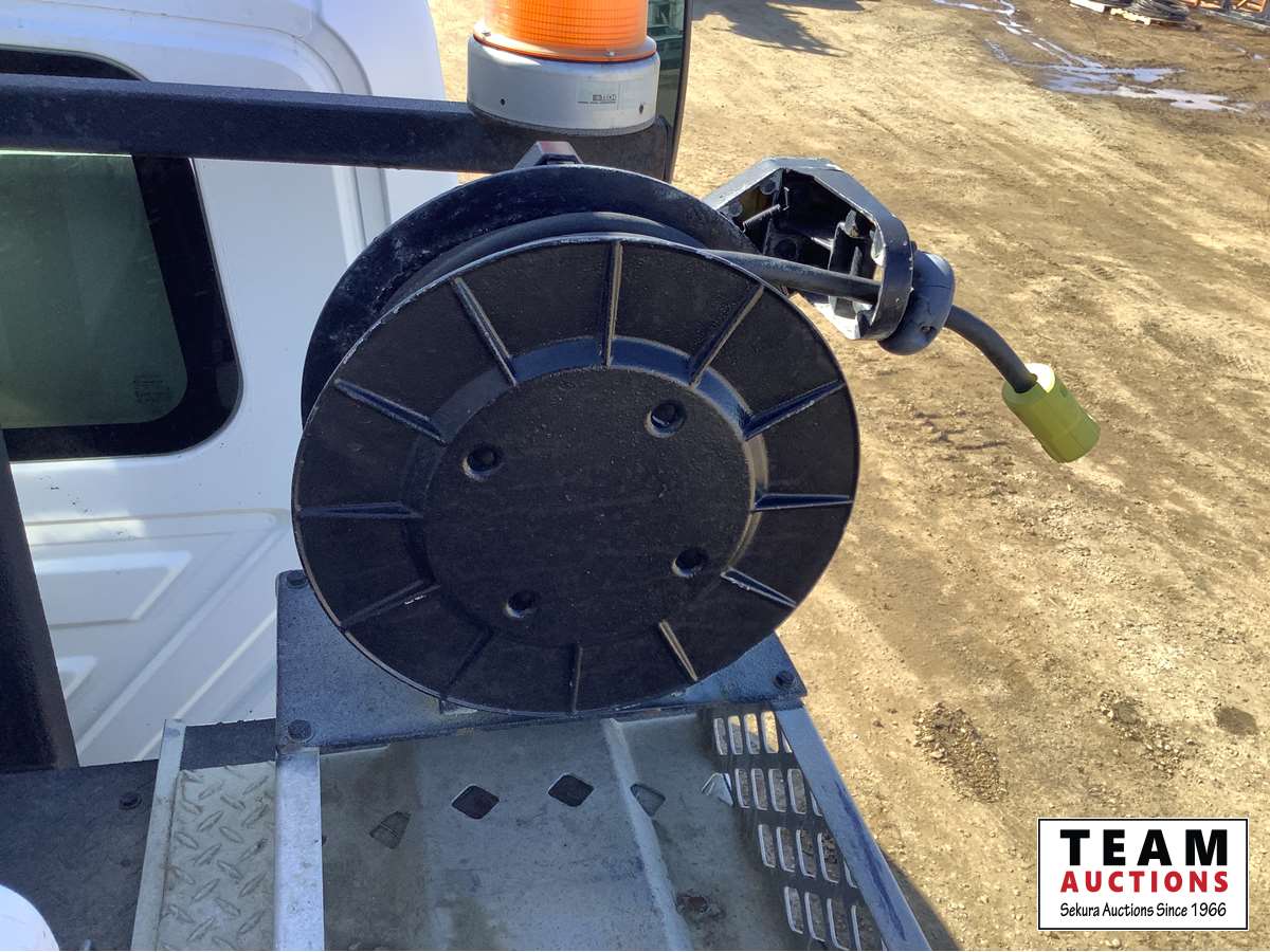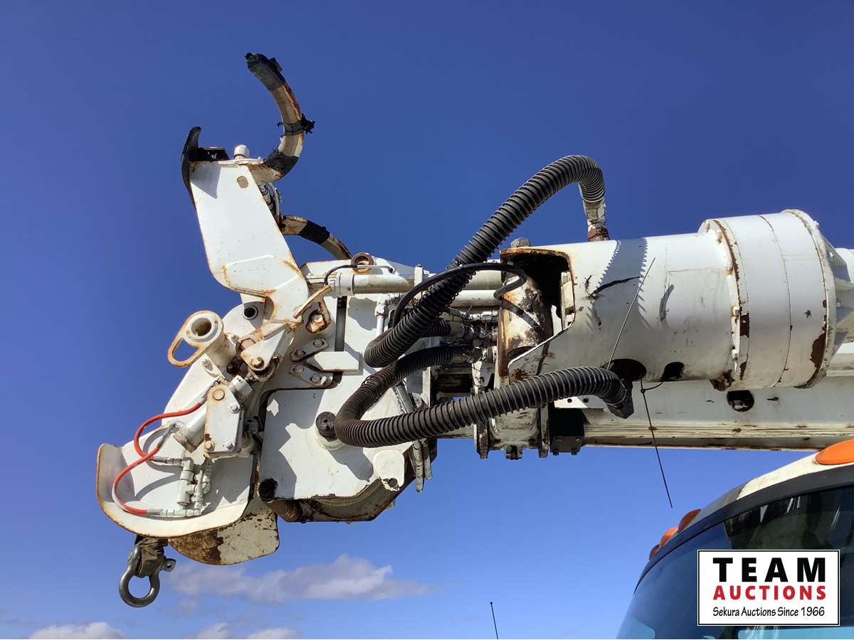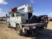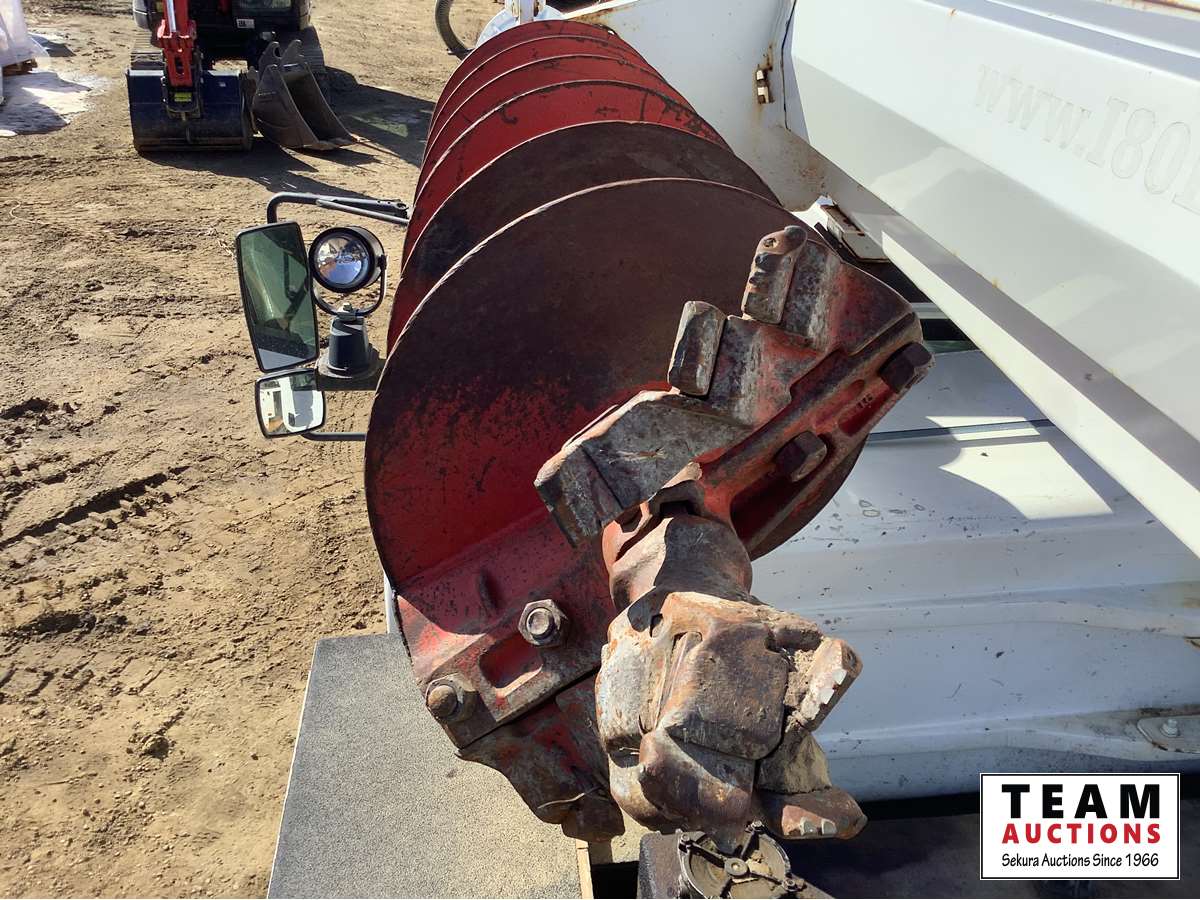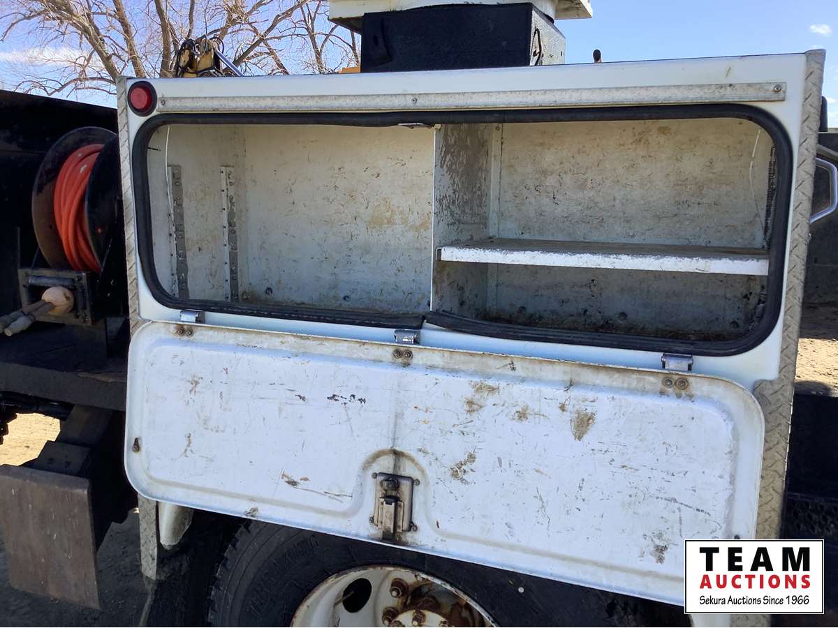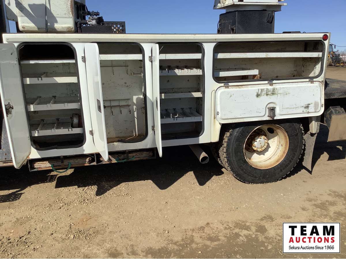 DT530 engine, Allison automatic transmission, air brakes, 12,000 front axle, 21,000 rear axle with differential lock, set up to tow air or electric brake trailers, Altec model D842 ART bucket and auger system with rear stabilizing arms, one auger with unit, new rear 11R22.5