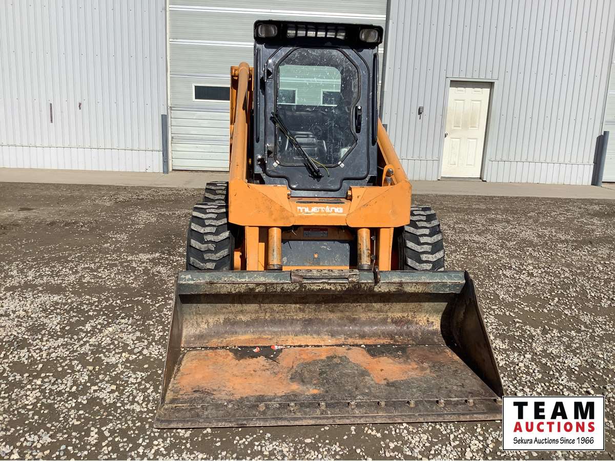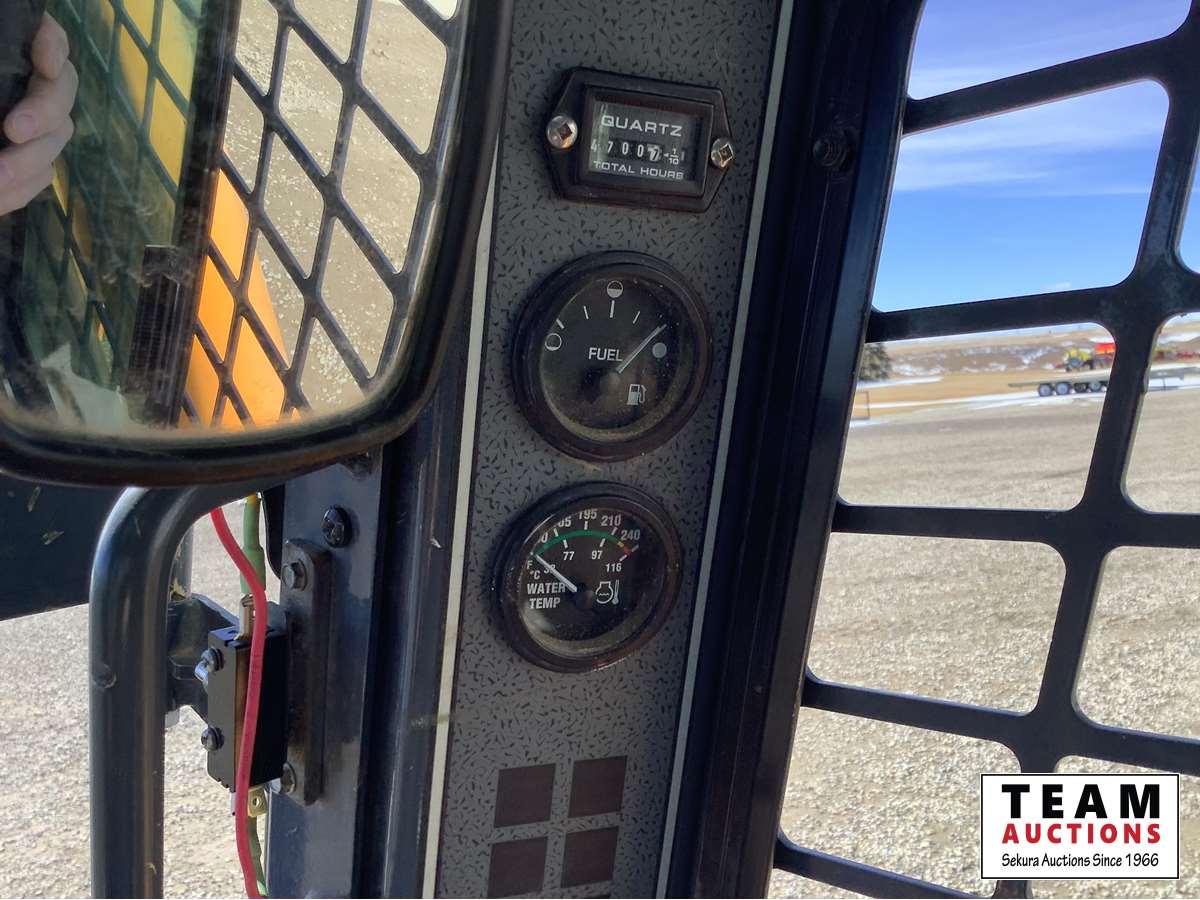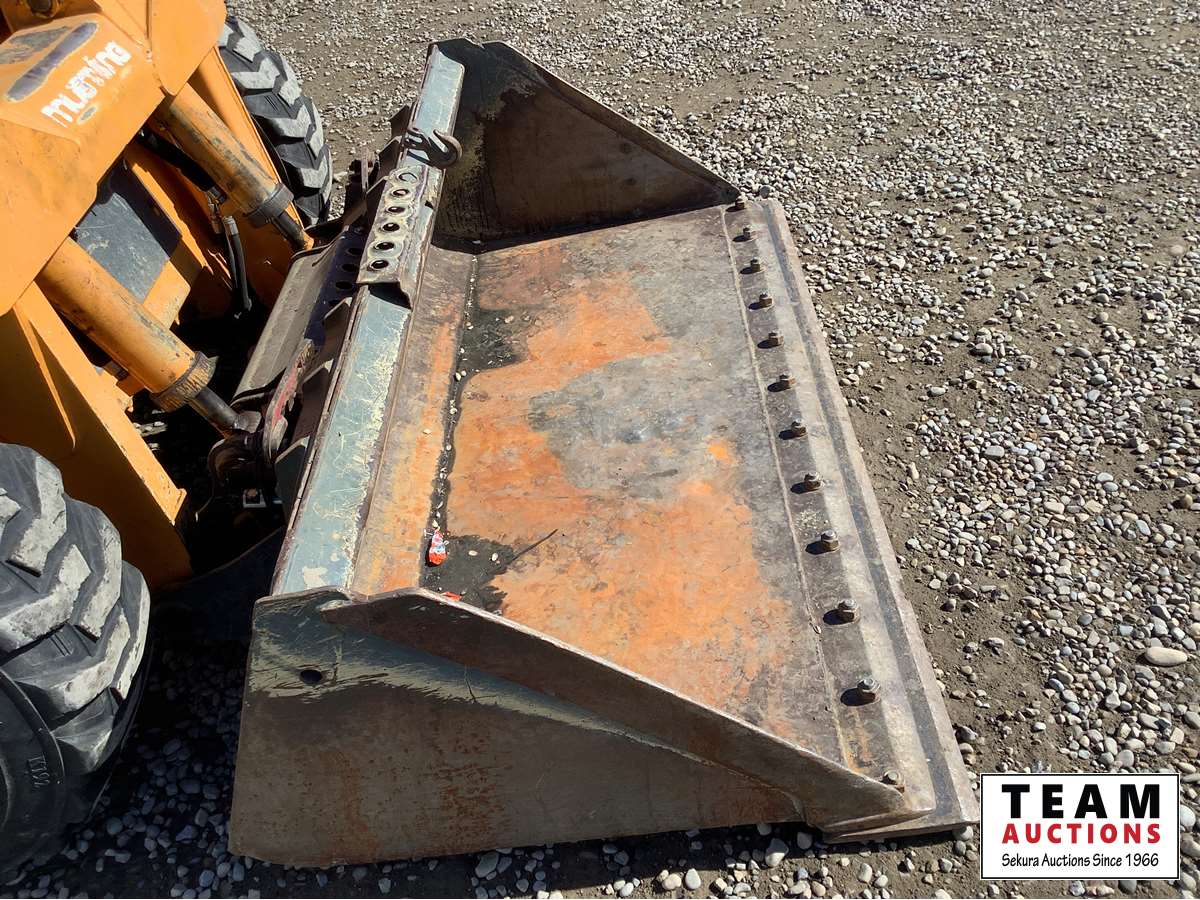 Smooth Q/A bucket, Yanmar turbocharged diesel engine, 2 speed, joystick controls, 3rd hydraulic valve, cab heat and A/C, rear drawbar, 12-16.5
