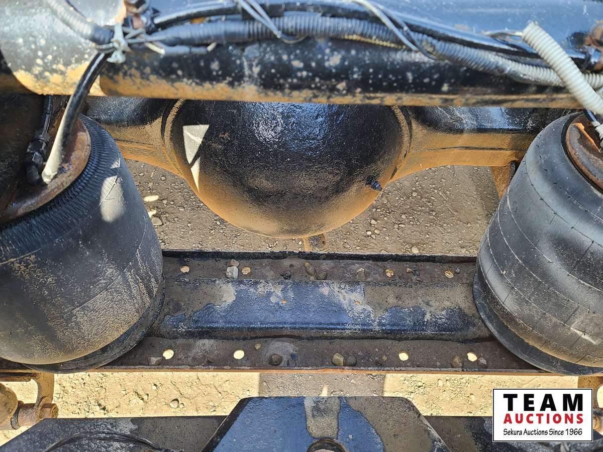 Caterpillar 3406E engine, 18 speed transmission, air ride suspension, 12,000 lb front, 45,000 lb rears, front axle air ride assist, Bryden winch, 5th wheel, beacon lights, aluminum wheels, 315/80R22.5 front tires, 11R24.5 rear tires