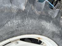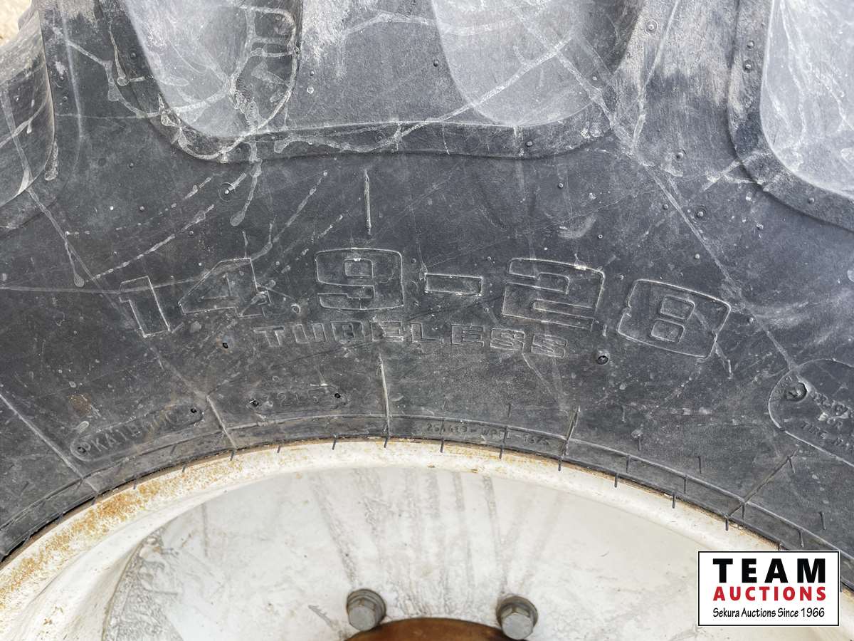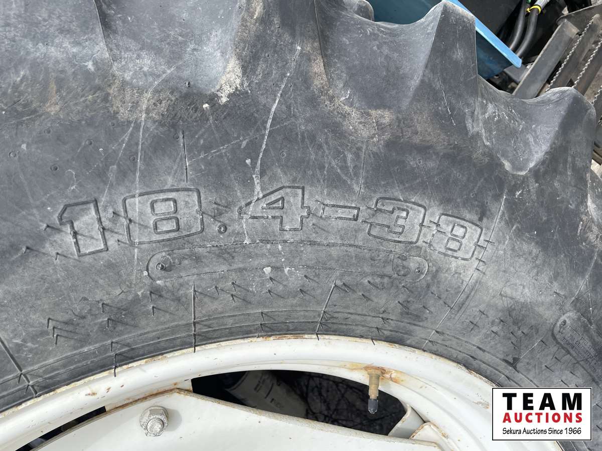 100 engine HP, 86 PTO HP, 16 speed semi power shift, joystick, differential lock, Ezee-On loader w/ 96 inch bucket, 3 PT hitch, 4 hydraulic outlets, 540/1000 PTO, 14.9-28 front, 18.4-38 rear