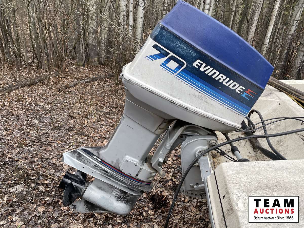 70 HP Evinrude outboard motor, new bilge pump, new prop, trailer