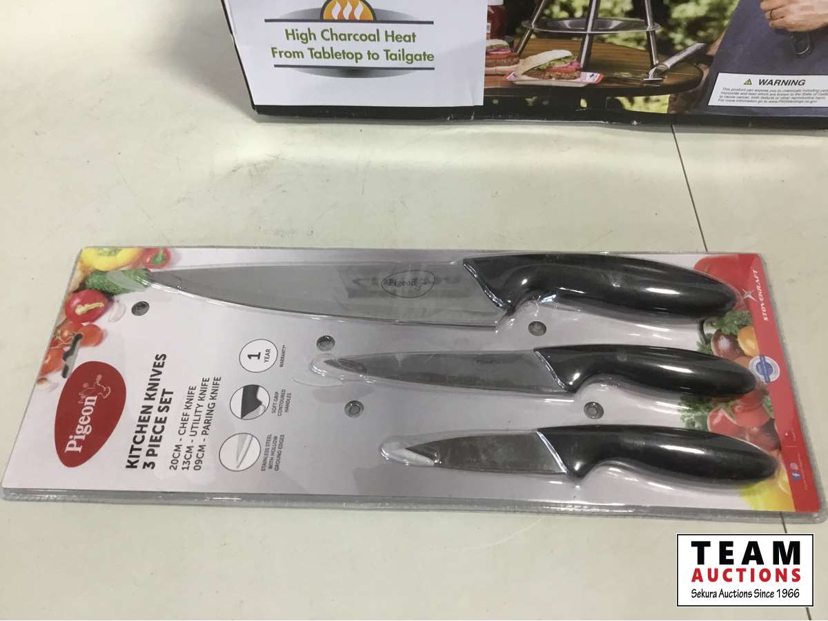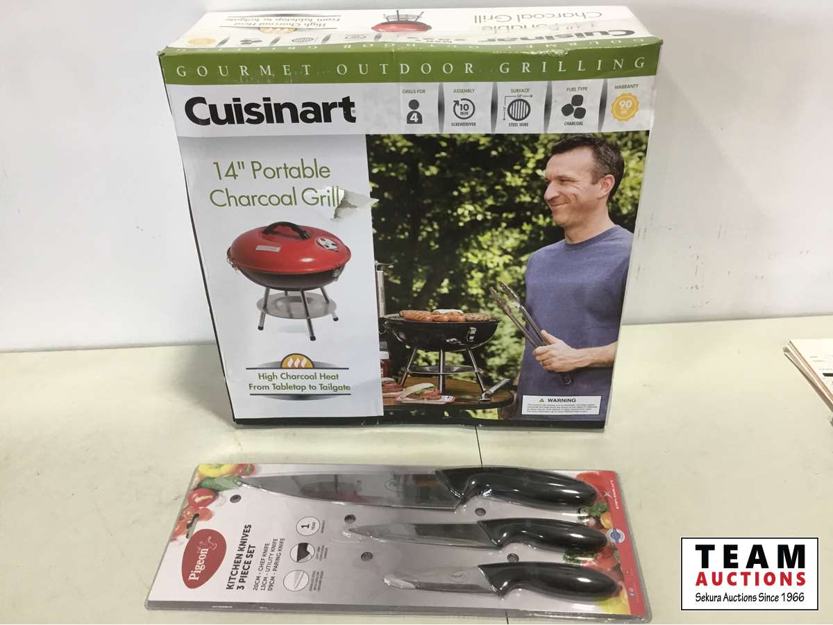 2588 14 Inch Charcoal Grill and Kitchen Knife Set (Unused)
