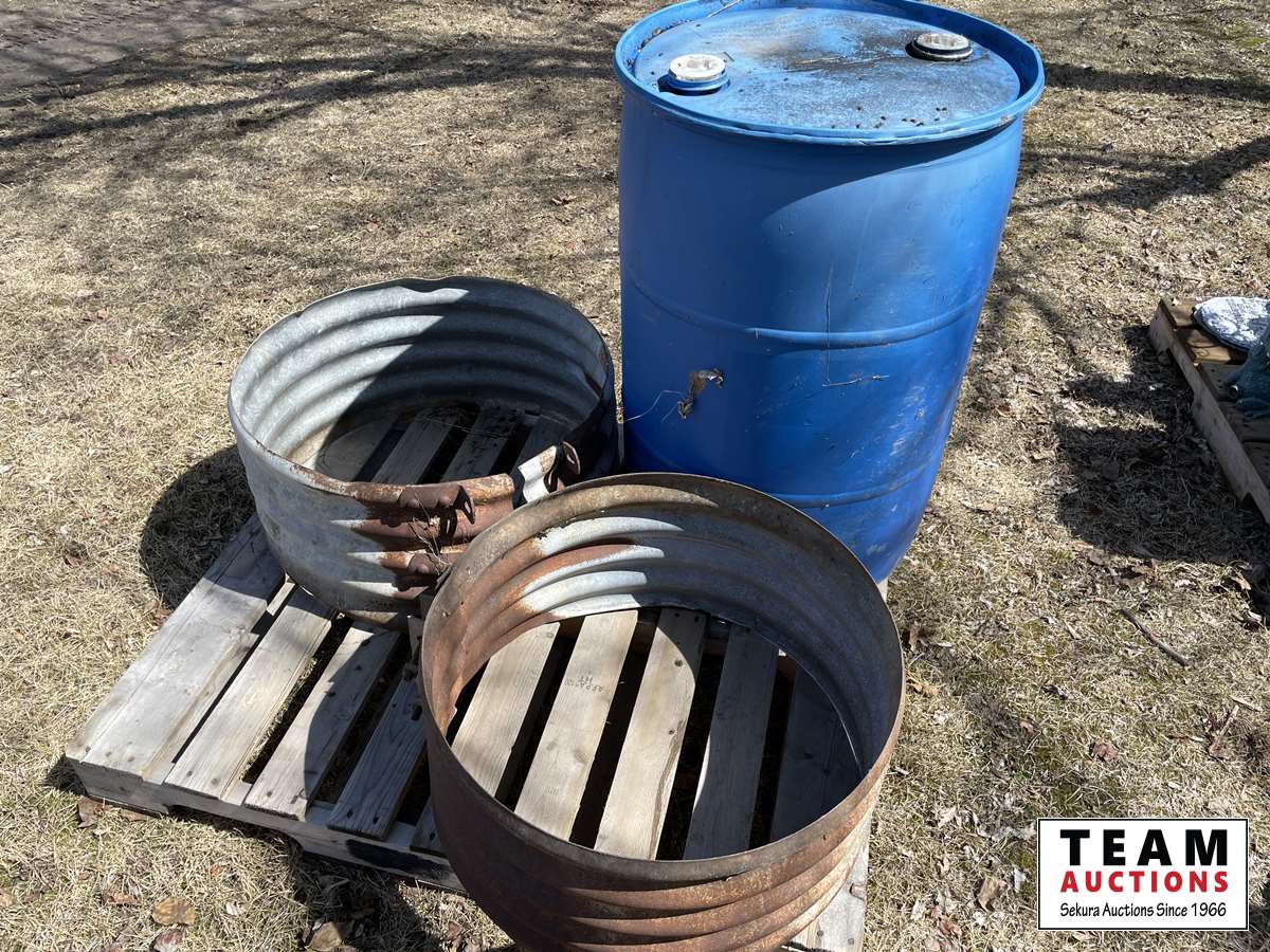 3764 (2) Culvert Connectors & Blue Poly Barrel