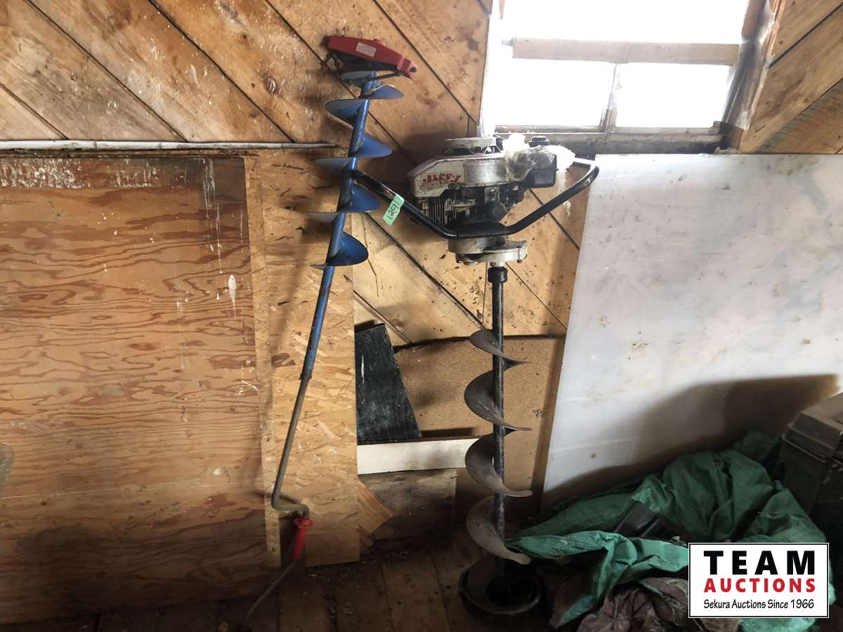 3738 (2) Jiffy 8 Inch Gas Ice Augers, One 6 Inch Hand Ice Auger