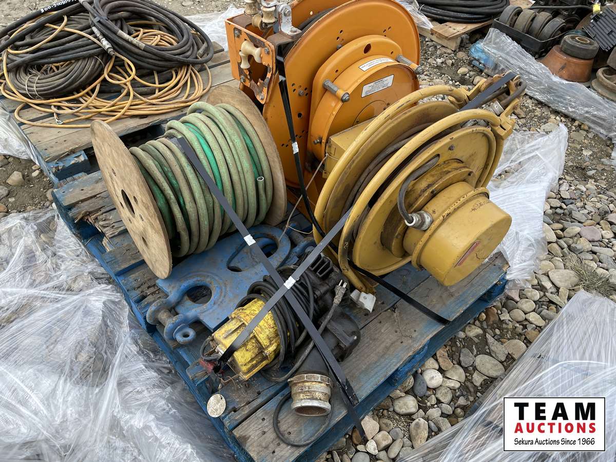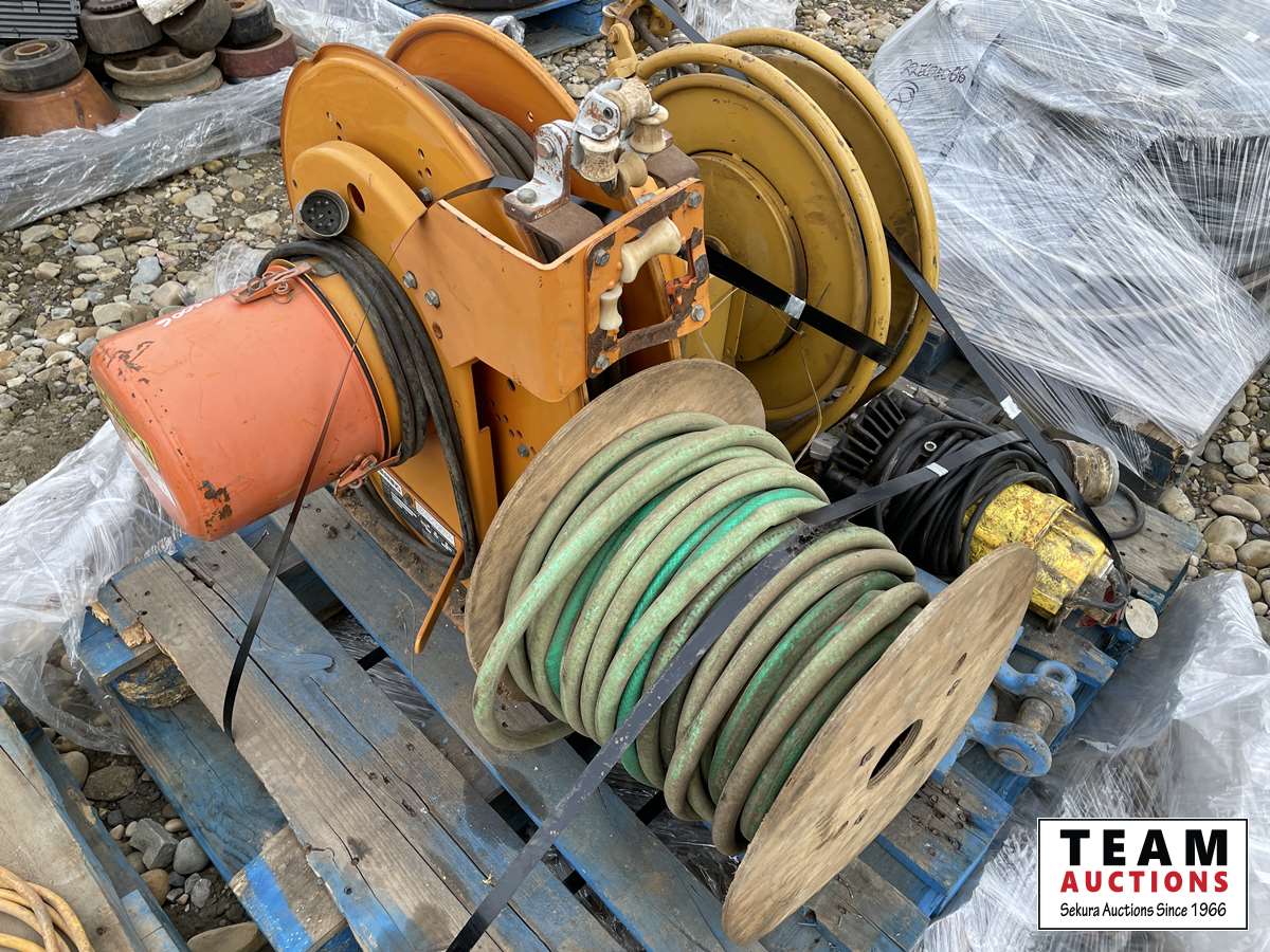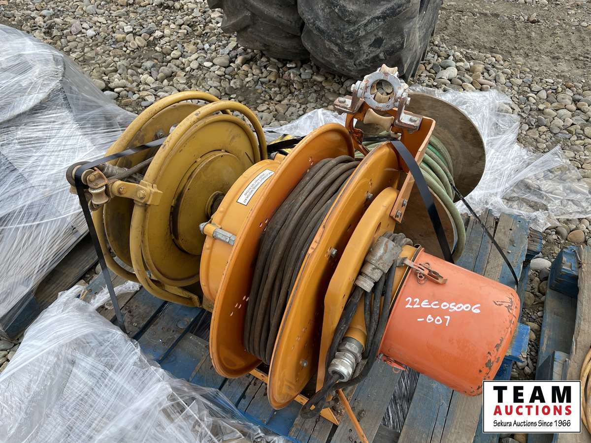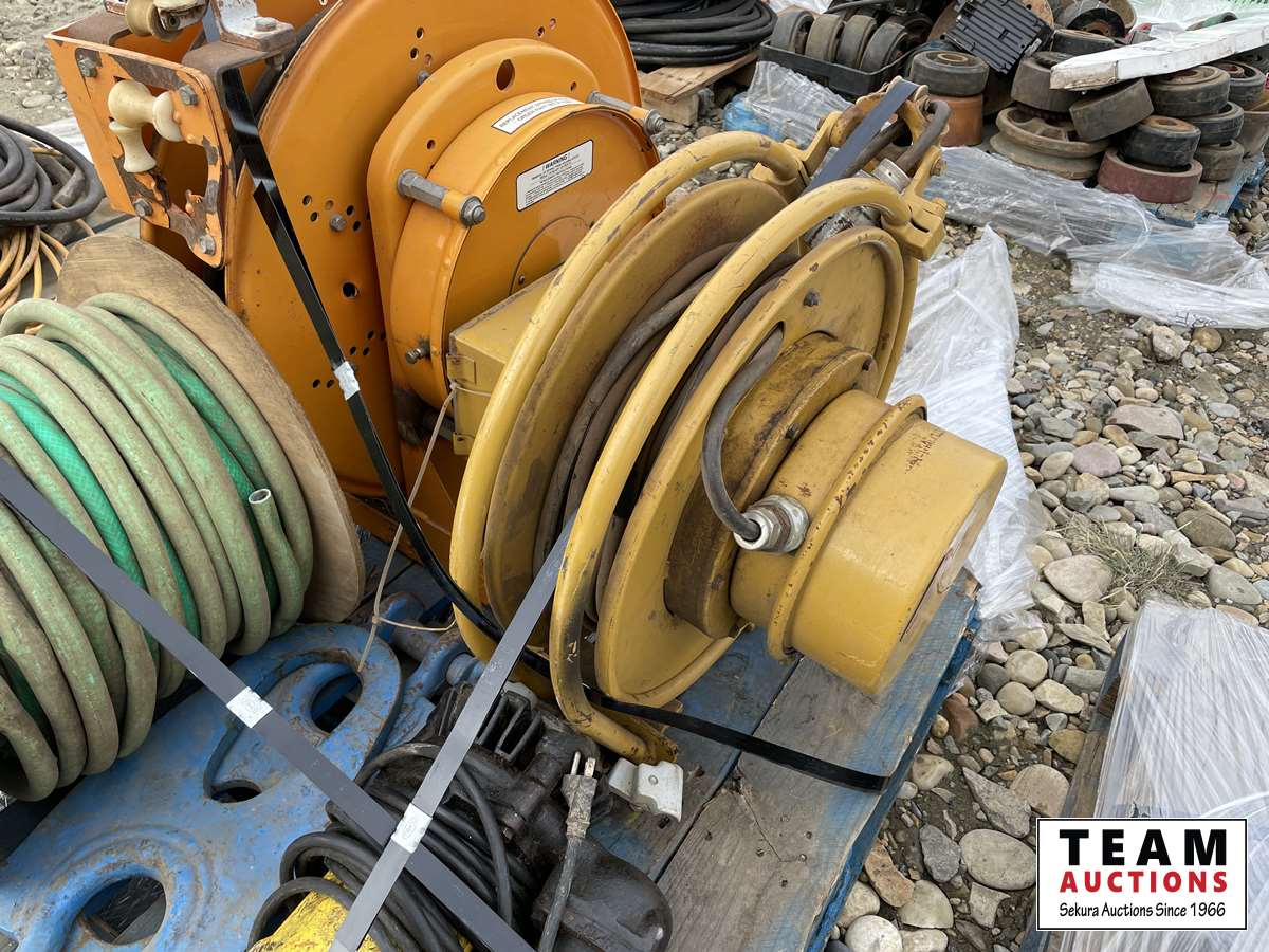3637 (2) Power Reels 35 Amp & Reel of Garden Hose
