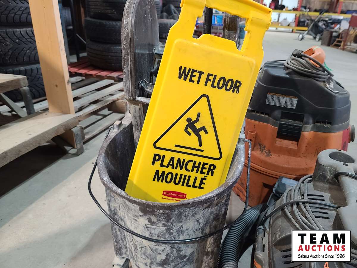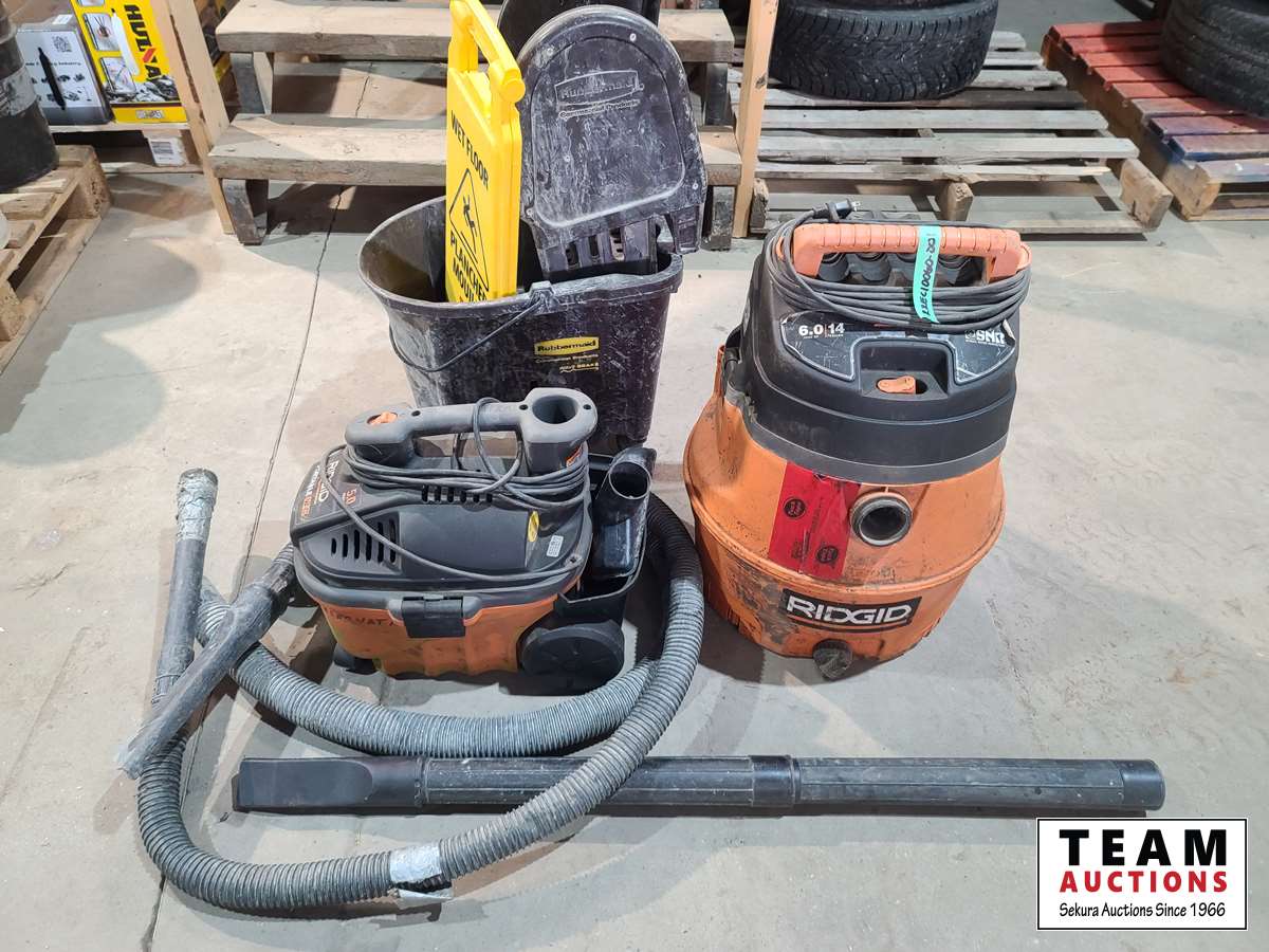 3353 (2) Ridgid Shop Vacs and Mop Pail w/Floor Sign