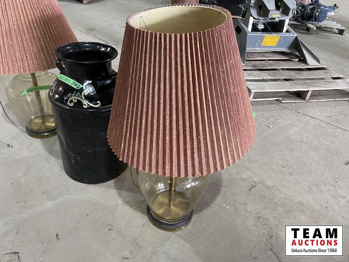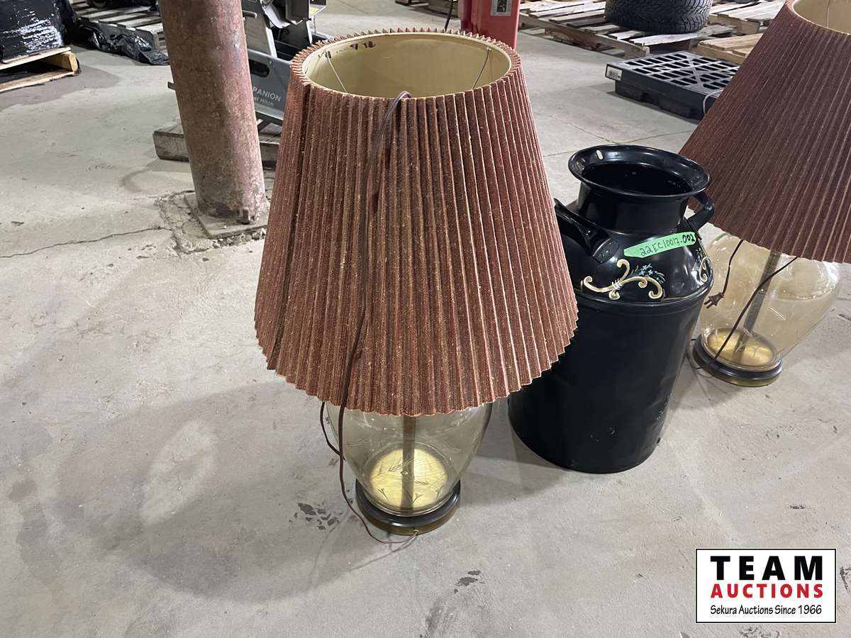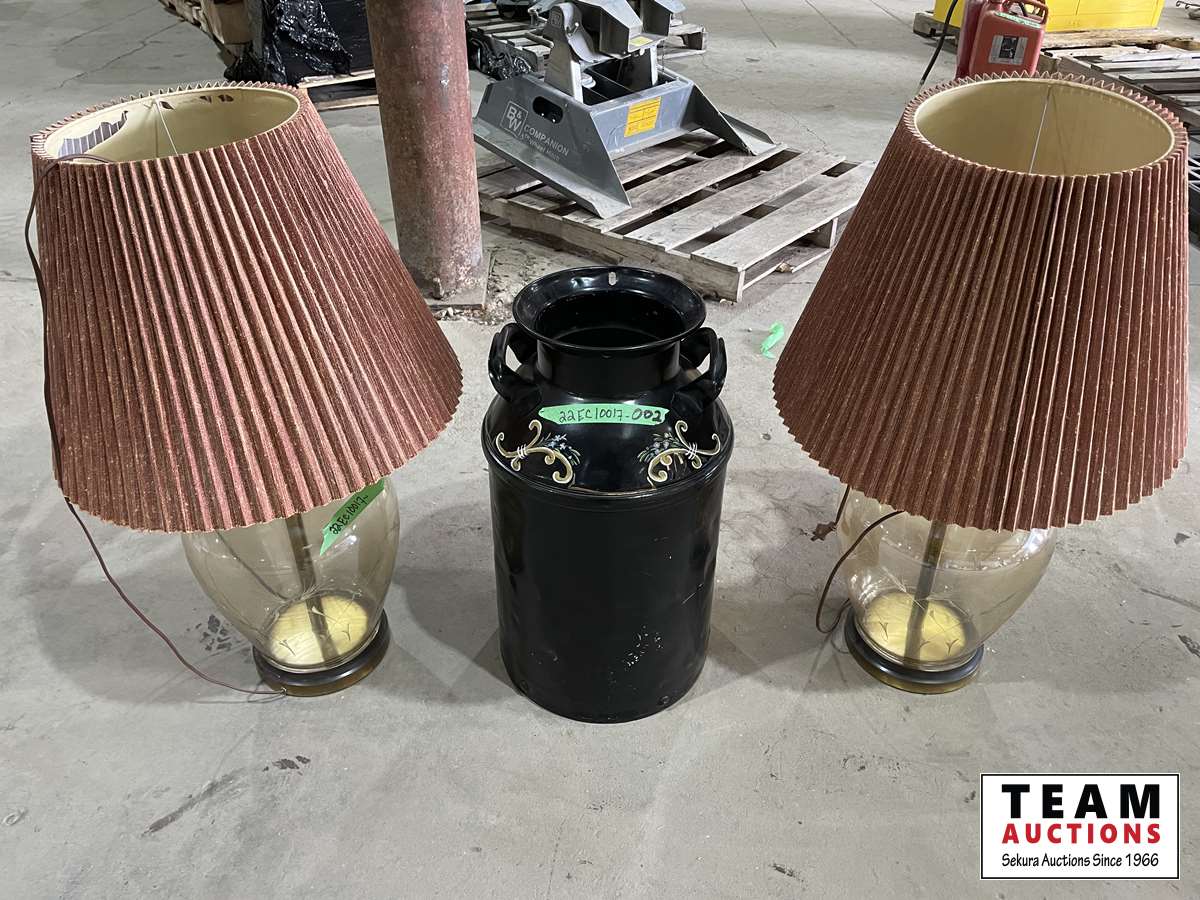 2188 (2) Vintage Lamps and Antique Painted Cream Can