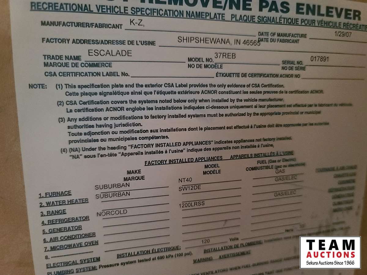 3544 2007 K-Z Escalade 38 Ft T/A Fifth Wheel Travel Trailer