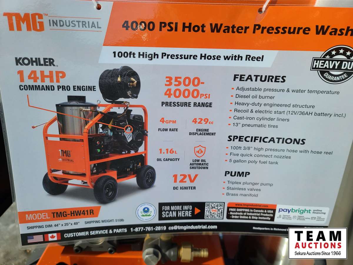 3838 TMG Industrial 4000PSI Pressure Washer with Hose reel (Unused)