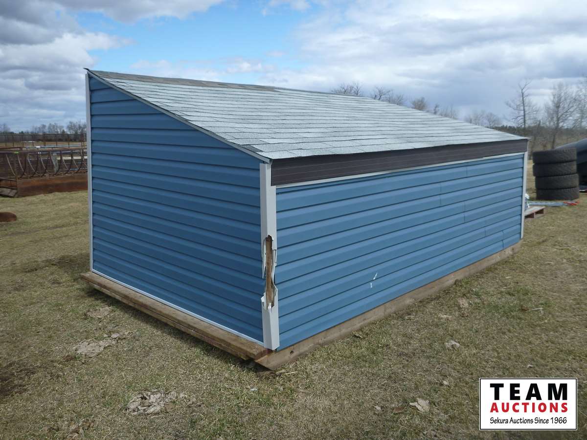 Vinyl siding, asphalt roof, wood skids