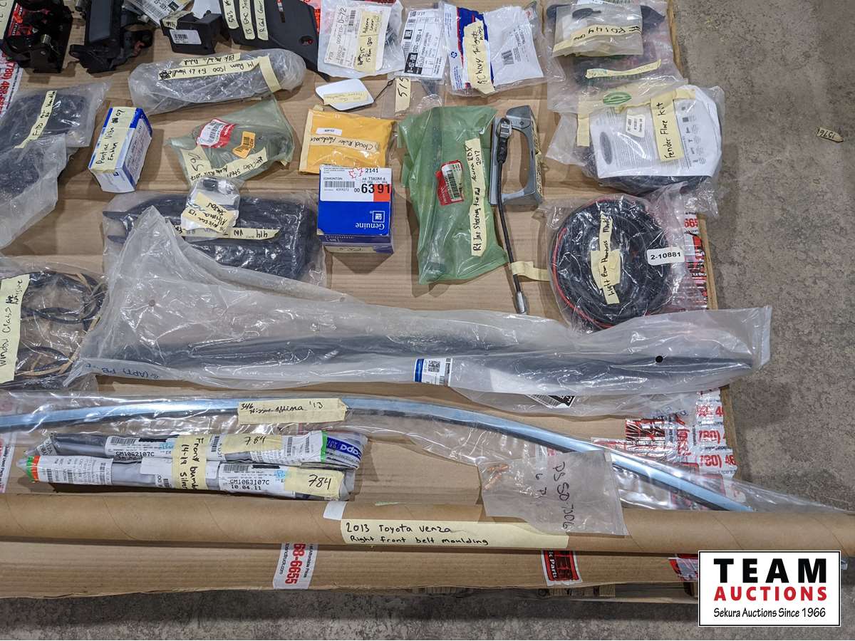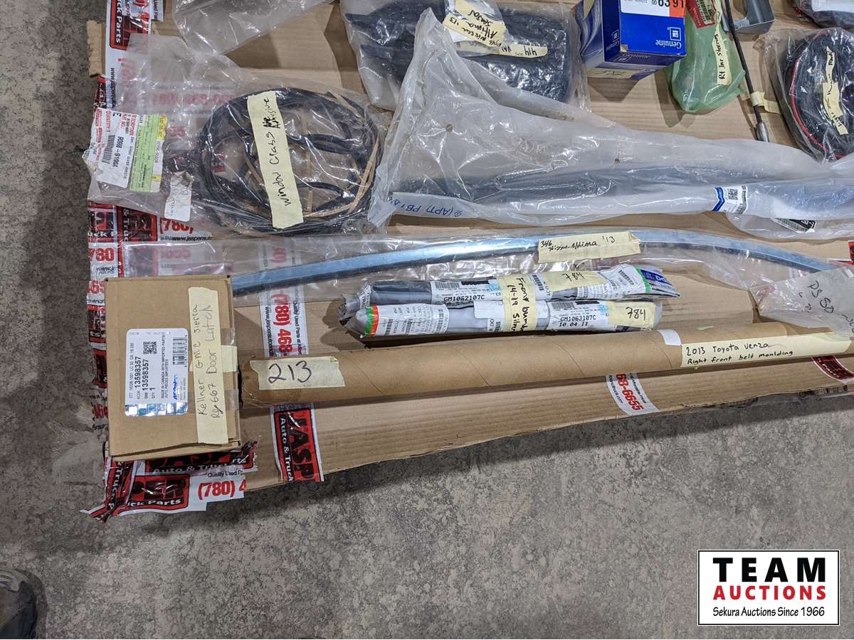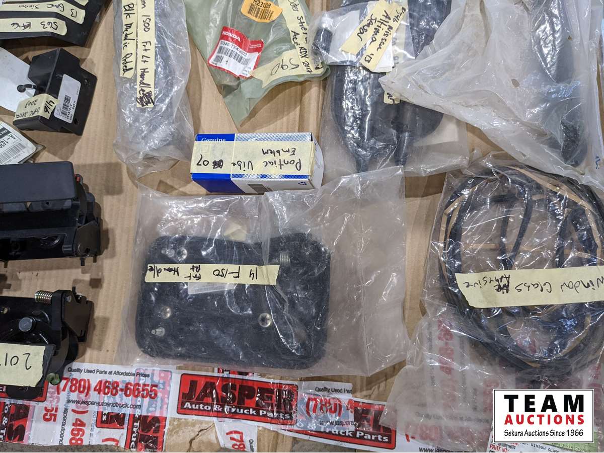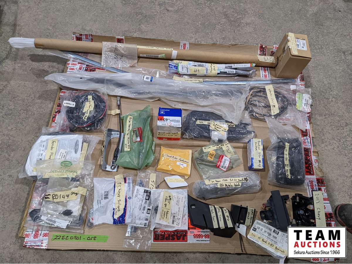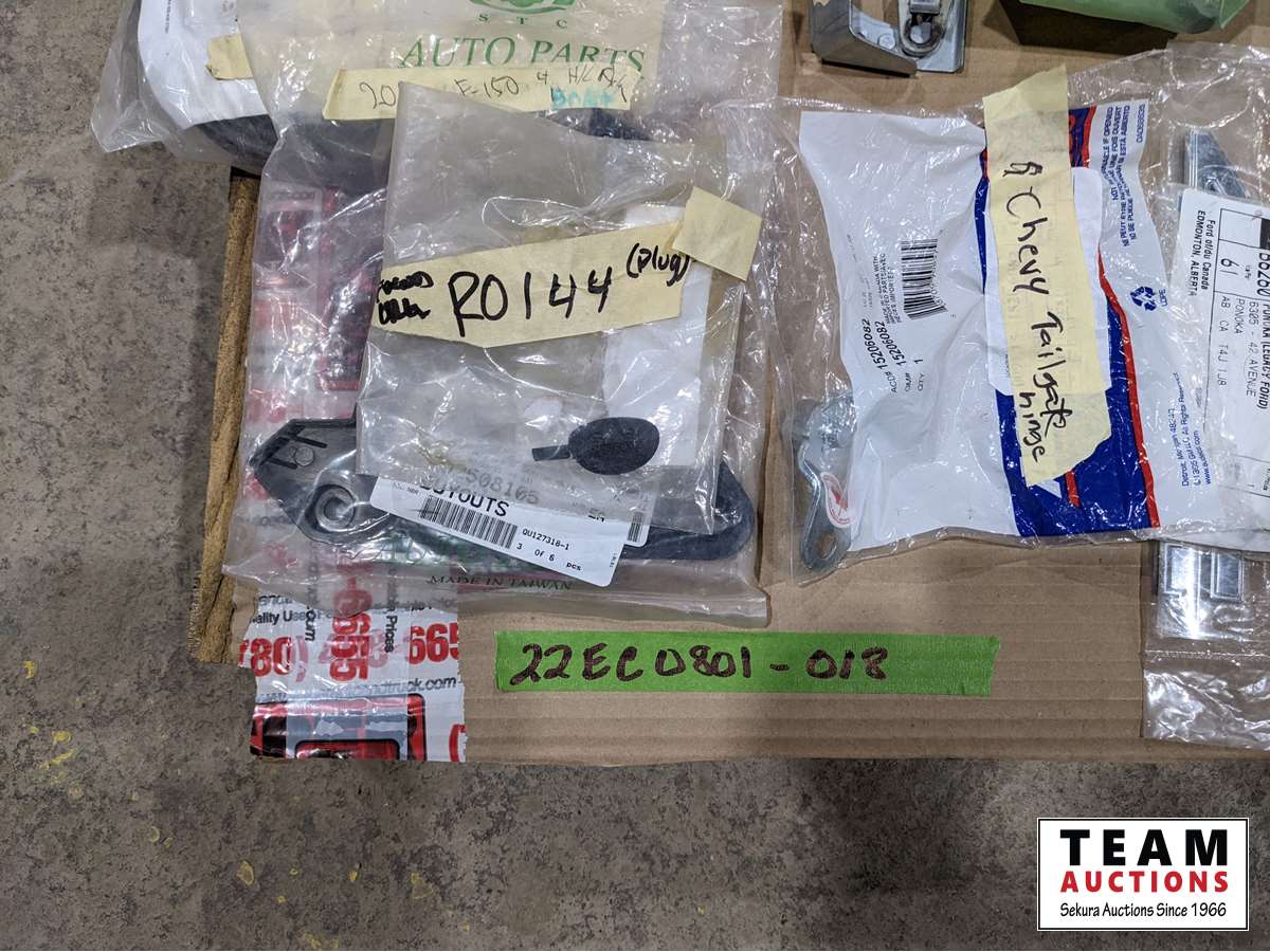 2012 Chev hinges, 2015 Ford box nuts, 2013 GMC cowl cover, 2015 Ram antenna cover, Chev tailgate hinges, 2016 Ford F150 head light bracket, fender flare kit, light bar harness, 2013 Venza right front moulding, 2014-19 front bumper brackets, 2017 Acura RDX right inner and right outer tie rod ends, plus much more